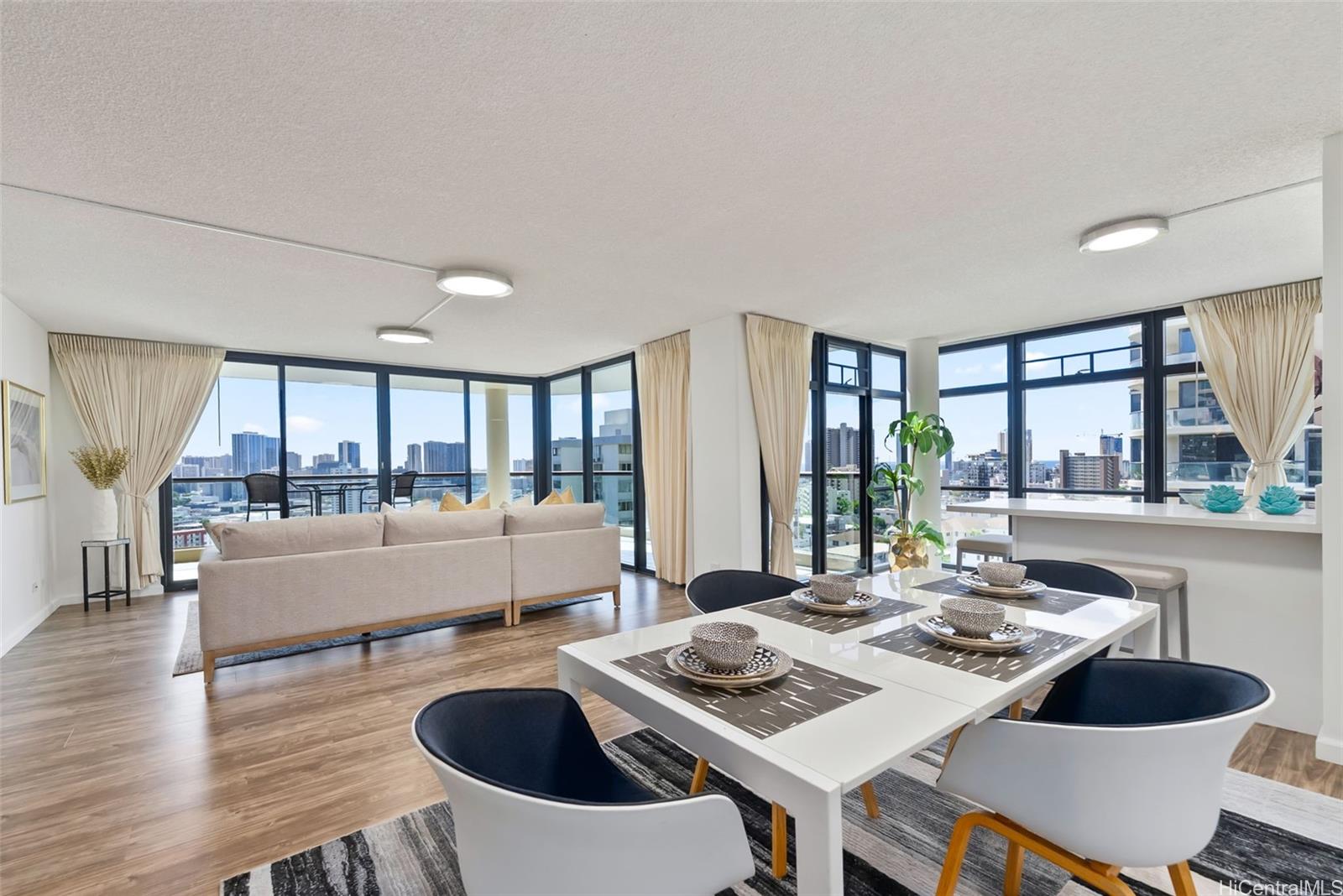 Experience the best of urban living in this expansive 3 bdrm/2 bath corner/end condo with 2 covered parking at 1015 Wilder in the highly desirable Makiki neighborhood. With nearly 1,500 sq. ft. of interior space, this unit offers exceptional comfort with generous room to relax and entertain. Features include fresh interior paint, stylish vinyl plank flooring, tastefully updated kitchen, and added dining-area cabinetry for extra storage. The wrap-around lanai showcases sweeping Diamond Head, city, and ocean views—an ideal backdrop for indoor-outdoor living. Amenities include a swimming pool, BBQ area, recreation spaces, and more. Conveniently located minutes from Downtown Honolulu, shopping, dining, schools, and freeway access. Discover the perfect blend of space, style, and views—schedule your private tour and see it for yourself!