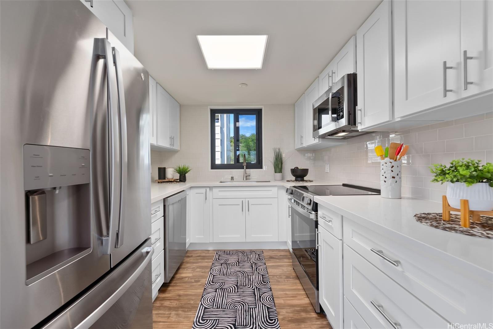 人気の高いマキキ地区、1015 Wilderにある広々とした3ベッドルーム/2バスルームの角部屋コンドミニアムで、都会生活の醍醐味を存分に味わってください。屋根付き駐車場2台分付きです。約1,500平方フィートの室内空間は、ゆったりとくつろぎ、ゲストをもてなすのに十分な広さで、極上の快適さを提供します。内装は塗り替え済みで、スタイリッシュなビニール製フローリング、センス良く改装されたキッチン、収納スペースを増やすためのダイニングエリアのキャビネットなど、魅力的な設備が充実しています。ラップアラウンド式のラナイからは、ダイヤモンドヘッド、街並み、そして海を一望でき、屋内と屋外が一体となった理想的な空間です。共用施設には、スイミングプール、バーベキューエリア、レクリエーションスペースなどがあります。ホノルル中心部、ショッピング、レストラン、学校、高速道路へのアクセスも便利な好立地です。空間、スタイル、そして眺望が完璧に融合したこの物件を、ぜひご自身の目で確かめてください。プライベートツアーのご予約をお待ちしております。