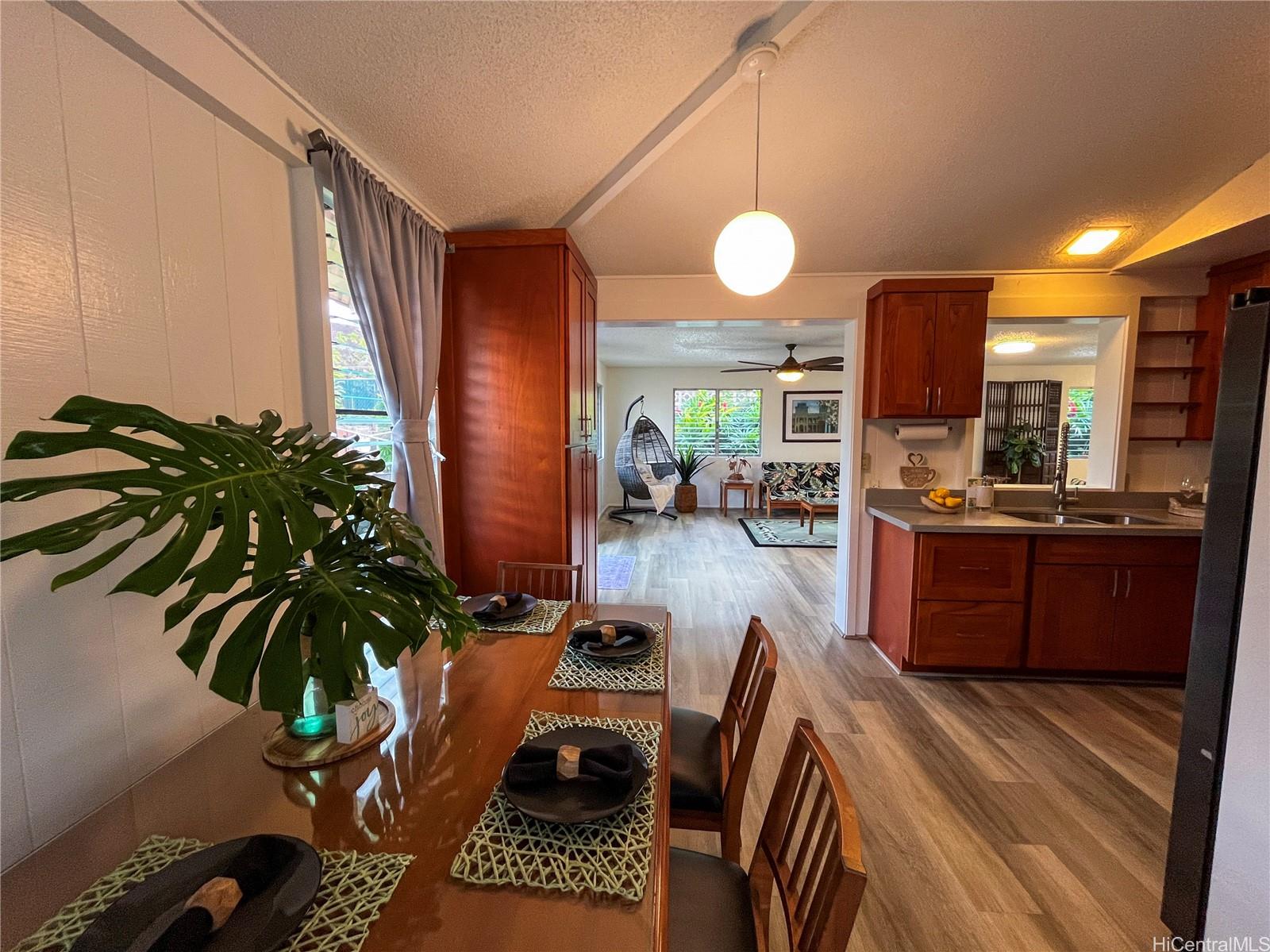 Welcome home! This is a move-in-ready, single-level home in the premier, highly desirable community of Mililani. Enjoy an open-flow layout with high ceilings, luxury vinyl flooring, renovated bathrooms and updated kitchen cabinets/counters. The expanded floor plan includes an additional large living area and a bonus flex space providing comfort and versatility. The washer and dryer is located indoors with shelving and storage space for added convenience during all weather conditions. Enjoy relaxing and entertaining outdoors in the front patio area or the back lanai surrounded by the large yard complemented with beautiful tropical plants. Location is everything! Just minutes from the H-2 freeway with easy access to Kamehameha Highway and bus lines to make daily commuting a breeze. Close to top-rated schools, military bases, parks, golf courses, shopping and restaurants. Residents of this vibrant community have access to Mililani's signature community amenities including recreation centers, pools, activities, classes and events. This loved home is ready for you to begin making memories.