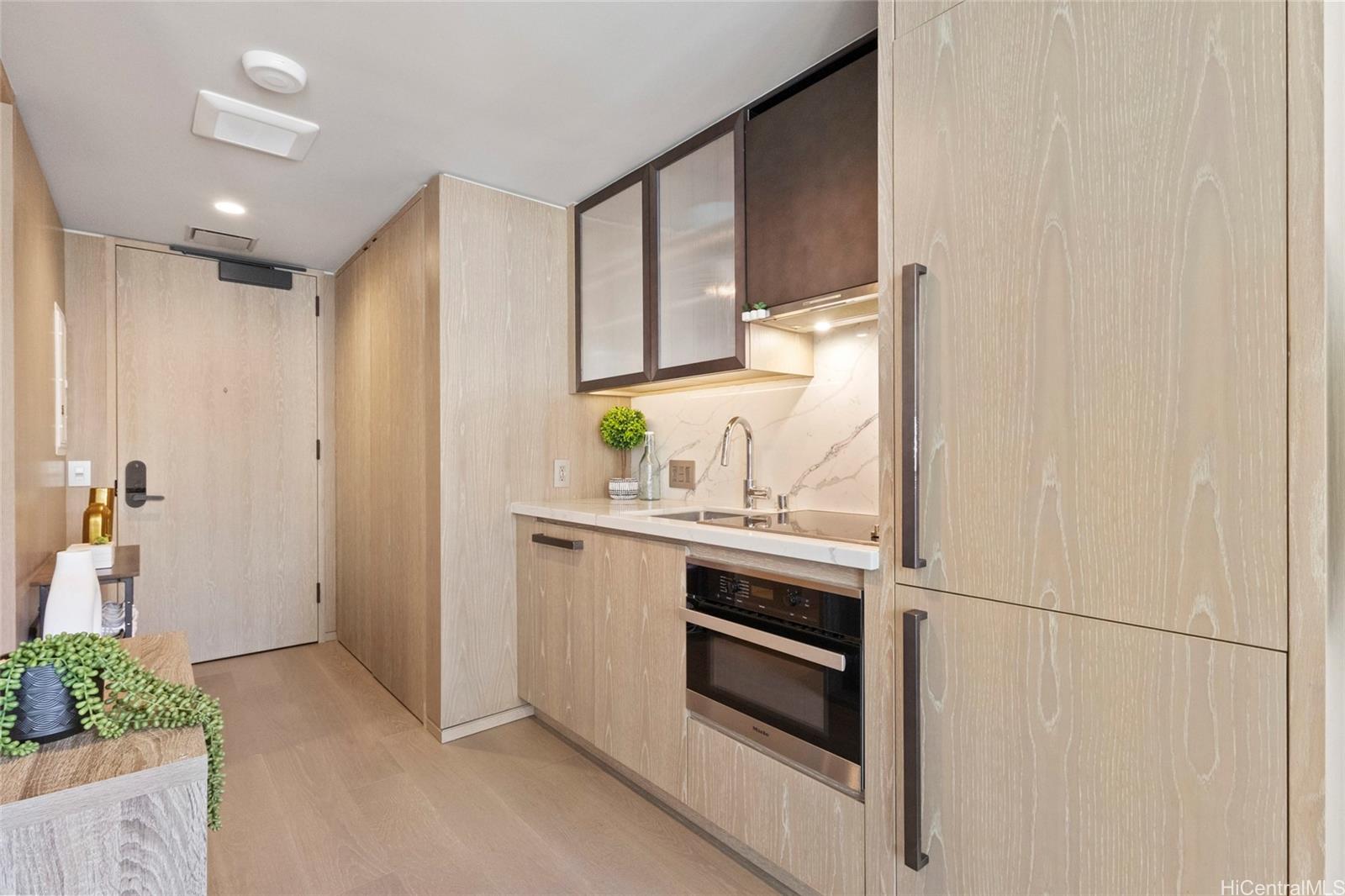 Koula, located in the heart of Honolulu’s award-winning Ward Village, offers a lifestyle of luxury and convenience. This studio features floor-to-ceiling windows, premium finishes like wide-plank hardwood flooring, kitchen with Miele appliances, spa-inspired bathroom, and a private lanai for ultimate relaxation. The building’s resort-style amenities include an infinity pool, jacuzzis, cabanas, a state-of-the-art fitness center, sauna, private dining rooms, playground, dog park, guest suites, and landscaped gardens. Koula places you minutes away from Ala Moana Beach Park, Kewalo Harbor, shopping at Ala Moana, an array of dining options, Whole Foods, movie theater, and vibrant cultural events.