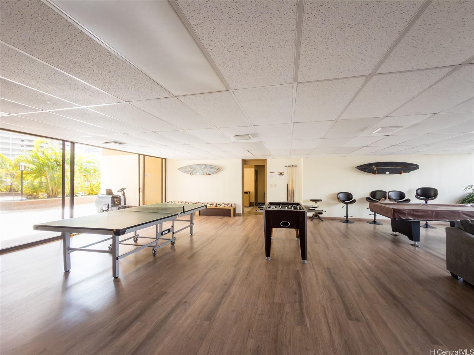 This upper-floor 2-bedroom, 1-bath residence at Chateau Wakiki offers wide-ranging views from the valley of the ocean, including Ala Moana Beach Park, the Ala Wai Canal, and the Hawaii Convention Center, with beautiful Waikiki sunsets enjoyed from the large open lanai. The modern interior features hardwood floors, electric blinds, pendant lighting, stainless steel appliances, and a bathroom finished with floor-to ceiling tile, along with the convenience of an in-unit washer and dryer. A valuable highlight is two well-located parking stalls-one on the ground level and one on the second floor-an uncommon and highly desirable feature in Waikiki. Chateau Waikiki is a well-maintained building on the sought-after west side of Waikiki, offering amenities such as a pool, gym, BBQ entertaining deck, recreation room, and library. the location allows easy access in and out of Waikiki, quick connections to Kalakaua Avenue and Ala Moana Boulevard, and is just a few blocks from Kahanamoku Beach Park, the Ala Wai Boat Harbor, nearby shops, restaurants, and entertainment. make an appointment and come see today! Disclaimer: one or more images have been virtually enhanced.