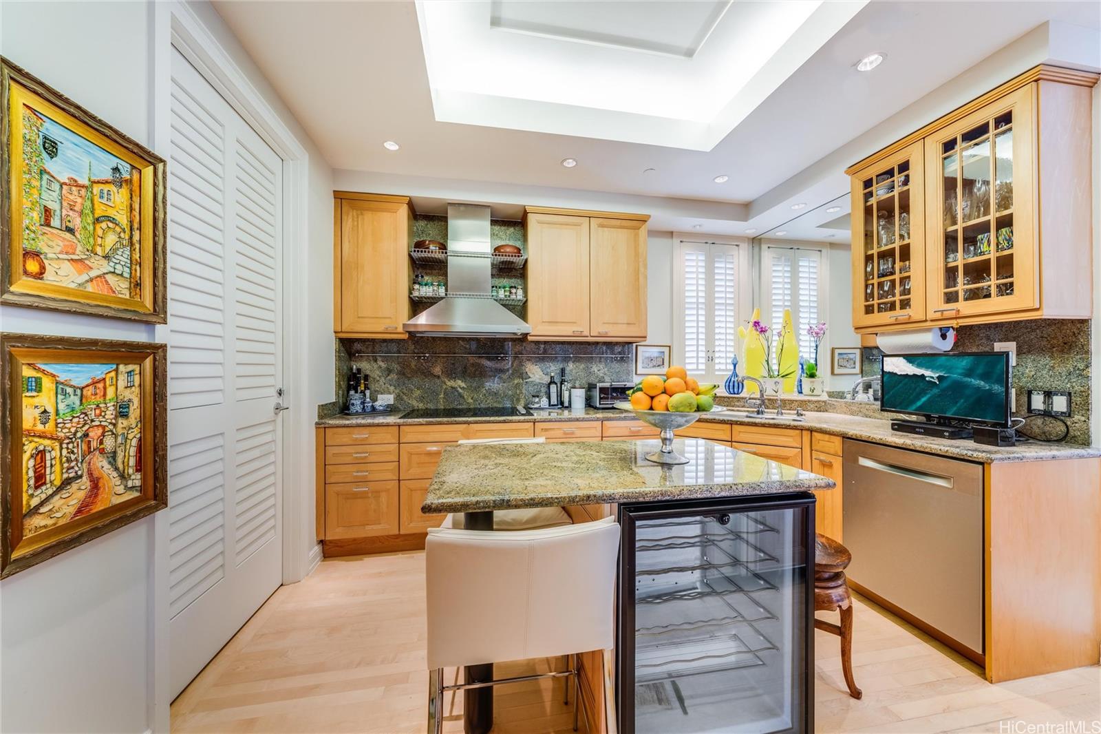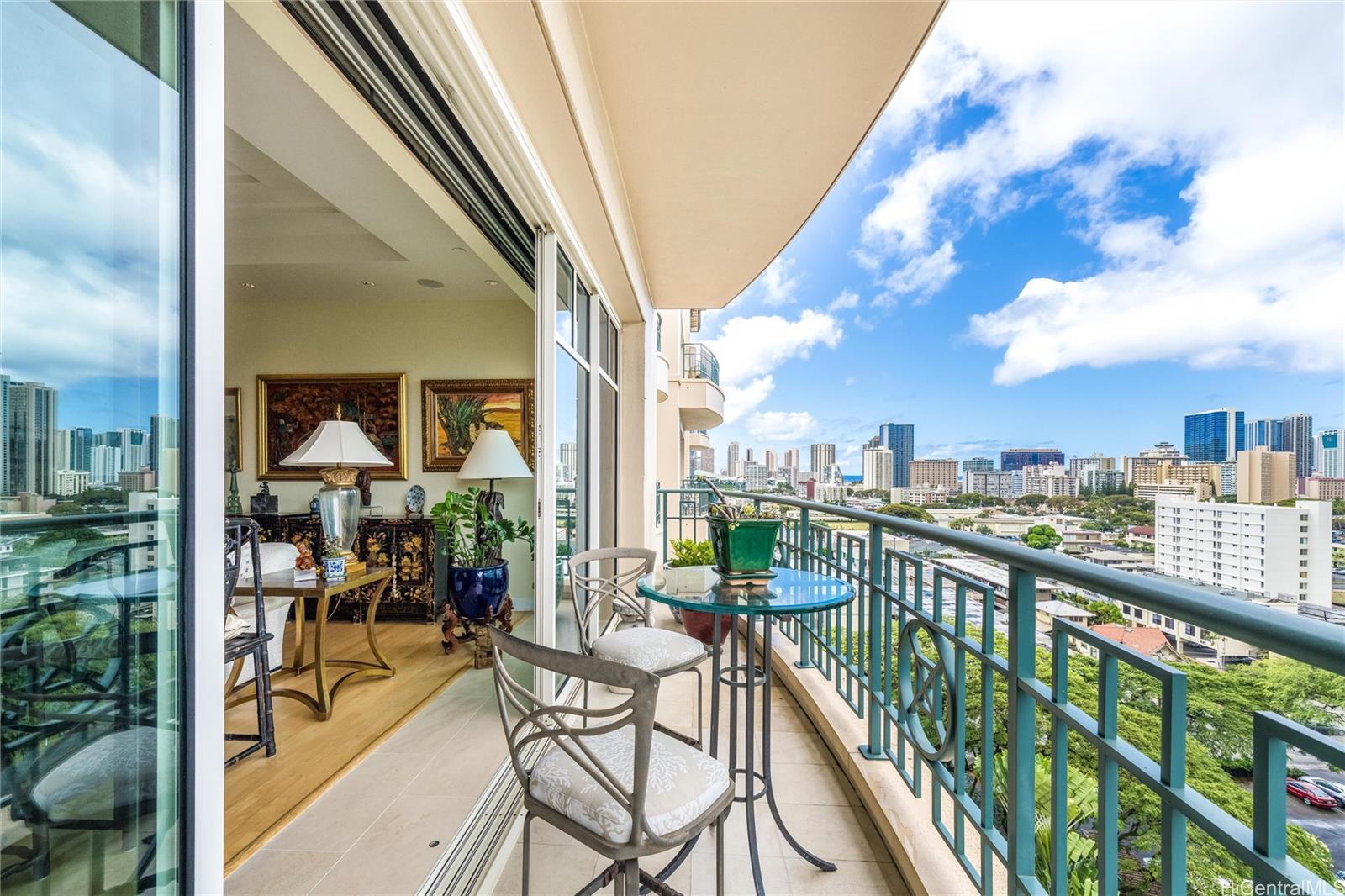 Discover refined island living in this elegant 2-bedroom, 2.5-bathroom residence located in the prestigious Courtyards at Punahou — a sophisticated, low-density building offering unmatched privacy of just 40 total units with 2 units per floor. Spanning 1,938 square feet, this generously sized home provides exceptional value per square foot in a serene yet central location. Step out of the elevator into your own private lobby and enter a thoughtfully designed space with soaring ceilings, rich hardwood flooring, and expansive windows that frame lush treetop views and the historic beauty of Central Union Church. The residence offers a rare blend of tranquility and convenience, tucked away from Honolulu’s urban congestion and insulated from the constant churn of new construction. This boutique community is an exceptional alternative to single-family home living. The building has peaceful, uncrowded amenities, beautifully crafted architectural details throughout the common areas, and 24-hour security for peace of mind. A hidden courtyard gem in the heart of town, the Courtyards at Punahou is where luxury, comfort, and privacy meet!