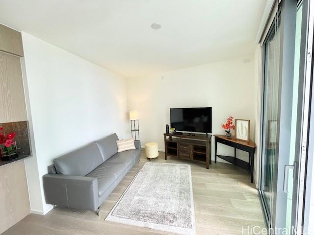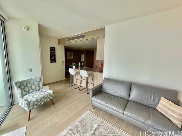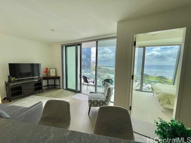 Ko'ula is one of the most stunning buildings in Ka'ka'ako, standing sleek, bright, and beautifully white against the skyline. This highly desirable “06” unit features a flexible dine-in area that can easily double as a home office, offering versatility for modern living.