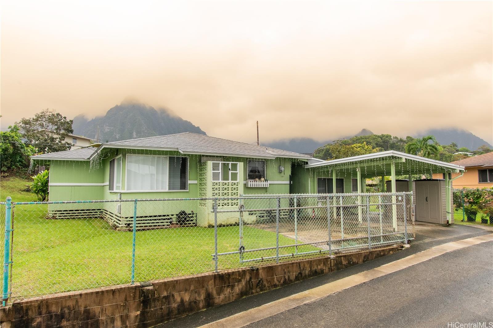 Rarely available opportunity in highly desirable Kaneohe, set against the stunning backdrop of the Ko'olau Mountains. This property offers a prime location at the end of a cul-de-sac with a strong neighborhood and exceptional potential. The main residence features 3 bedrooms and 1 bathroom with generous living spaces, providing a blank canvas for renovations and personalization. A fully remodeled ADU was completed in 2023 and includes 1 bedroom and 1 bathroom, along with new plumbing and new electrical, making it move-in ready. Major improvements completed in 2023 include a new roof, plumbing and new copper water lines. An excellent opportunity to customize the main home while immediately benefiting from the finished ADU for rental income, multigenerational living, or flexible use - all while enjoying beautiful mountain views and the Kaneohe life style.