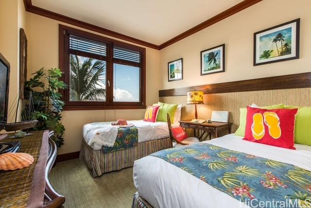 Experience a new level of luxury when you enter this beautifully appointed 2-bed, 2-bath Beach Villa, which will lift your spirits the moment you walk in the door! Truly the ultimate in Island living! Ideally situated in a highly desired location (CENTER OF THE OCEAN TOWER) which captures stunning ocean views, lush tropical gardens, serene koi ponds, gorgeous landscaped pool/jacuzzi area that comes to life w/tiki torch lined paths at sunset. Rich mahogany wood pocket doors seamlessly open to ocean-facing views and integrated elements of a World-Class Resort Destination. As you enter your semi-private elevator you're just steps away from the lagoons and enjoying poolside relaxation or an exhilarating workout @ the Fitness Center. High-end features include, travertine stone flooring, fully furnished with tropical island elegance, and chef Roy Yamaguchi custom designed kitchen. The Beach Villas feature a State of the Art Fitness Center & Spa, Lap Pool, Lagoon Style pools, Koi Ponds, Owners Beachside Bar, and a Private Meeting/Party Pavilion w/a catering kitchen. This residence is currently a successful legal turn-key short term vacation rental. INCLUDES TWO PARKING STALLS.