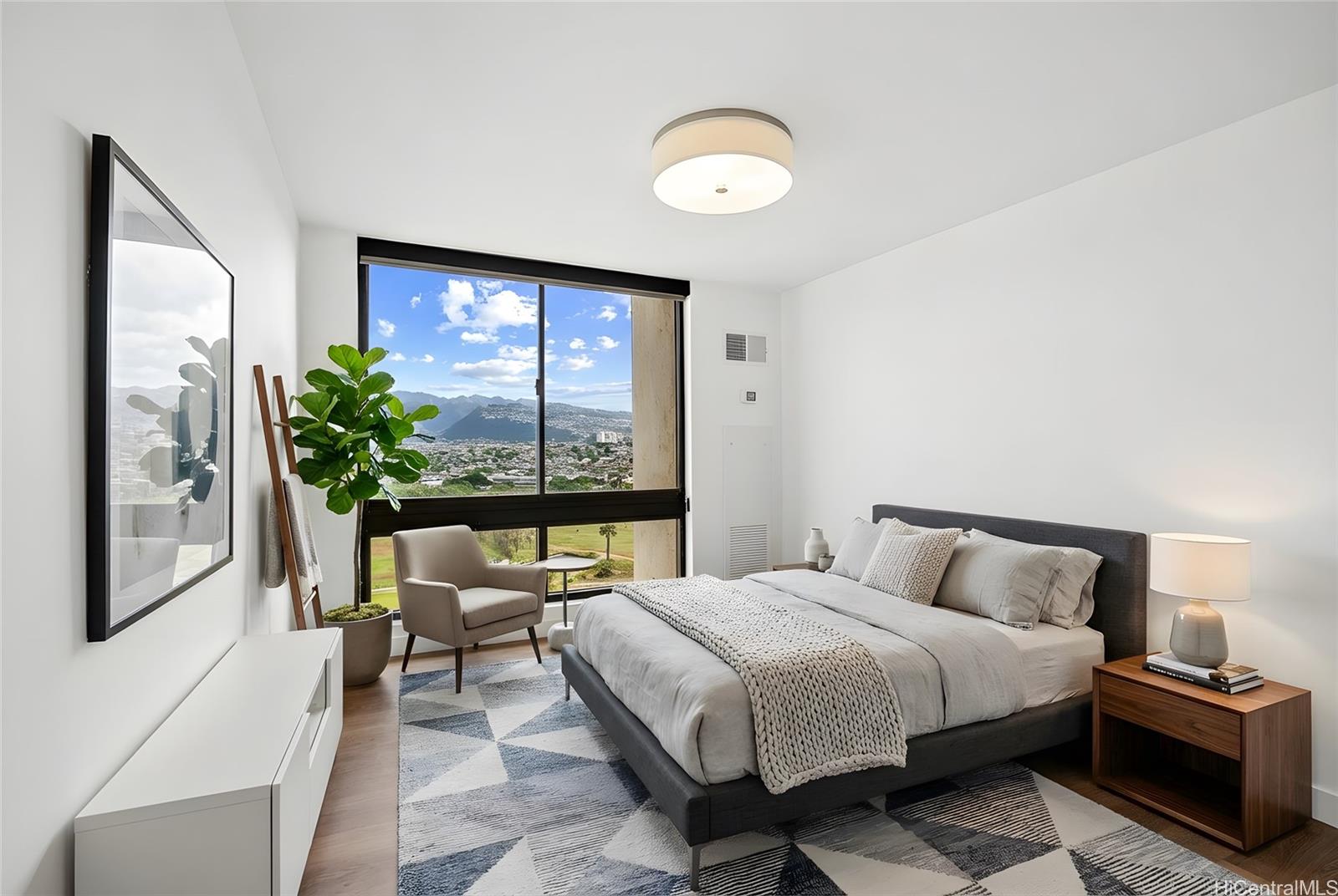 THIS IS IT....! Rarely available two bedroom, two bath condo in the coveted "12" stack of the King Tower at Liliuokalani Gardens. The large 944 sf unit features gorgeous, wide- open views over the golf course and out to the Ko'olau Mountains. You'll love coming home to this remodeled unit with new appliances, paint, luxury vinyl plank floors, central A/C, custom shades, fire sprinklers and a large storage closet. The preferred floor plan offers privacy with bedrooms on opposite sides of the condo, in-unit washer/dryer and unobstructed views from the living areas and both bedrooms. Liliuokalani Gardens is famous for its expansive and spectacular gardens that cover 70% of the property. The resort-style amenities include the pool & spa surrounded by beautiful tropical gardens, koi pond and stream, BBQ areas, a pool pavilion with a full kitchen and two lighted tennis courts. Enjoy the best of Waikiki living with the close proximity to the beach, restaurants, shopping and entertainment. 24/7 security, secured parking, guest parking and secured bike and surfboard storage make this condo an excellent value! One or more photos have been enhanced.