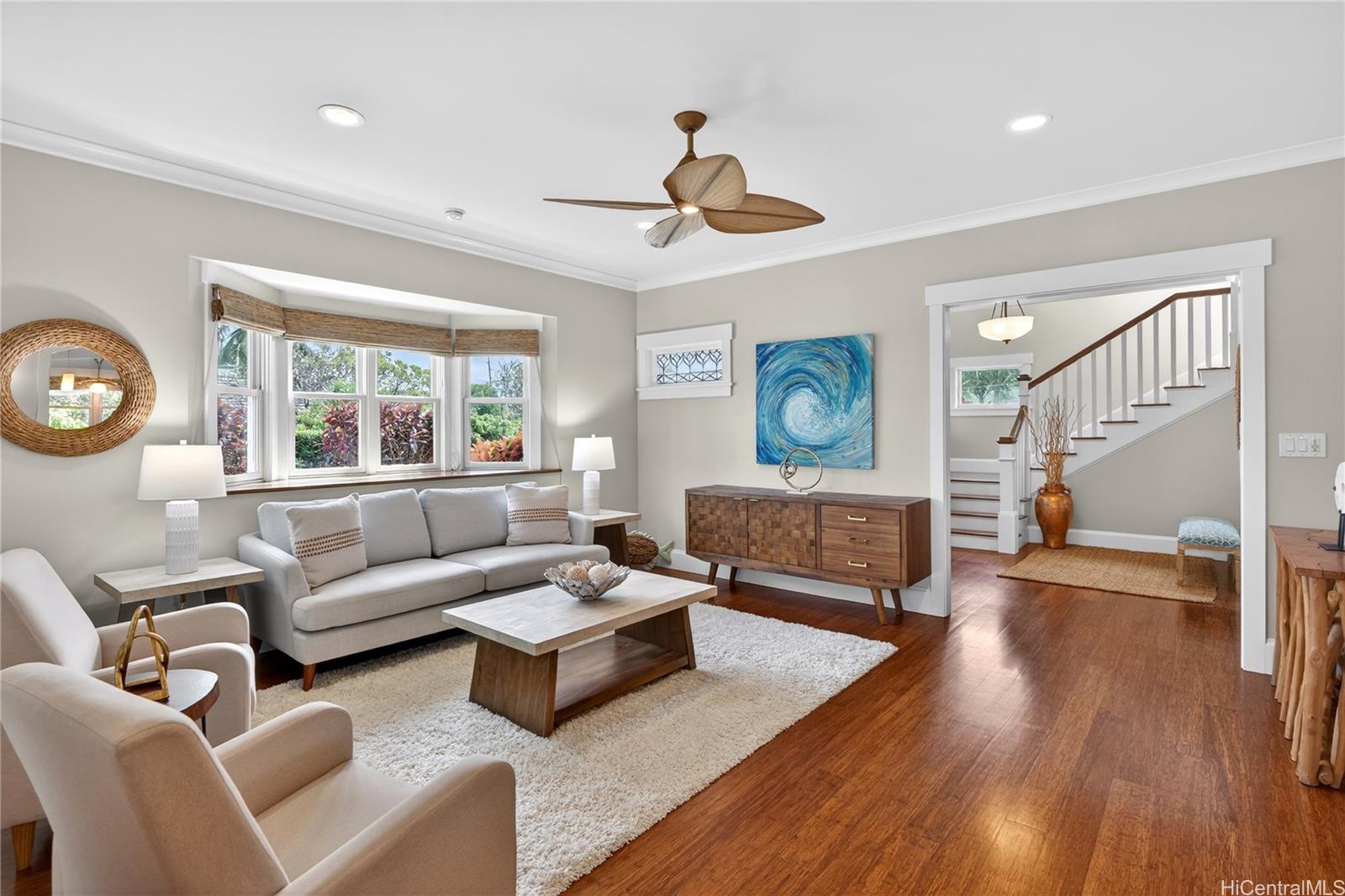 誰もが憧れるビーチサイド・カラヘオの静かな小道に佇む、LEEDゴールド認証取得済みのこの邸宅は、時代を超越した島の建築様式と先進的なデザインが見事に調和した、類まれな空間です。2014年にモクルア・ハイ・パフォーマンス・ビルダーズによって建設された5ベッドルーム、3.5バスルームの住宅は、品質、快適さ、そして持続可能性へのこだわりを反映しており、上質な堅木張りの床、精巧な木工細工、そして温かみのある控えめな優雅さを醸し出す9フィートの天井が特徴です。美しく整えられたキッチンを中心とする開放的なリビングスペースには、太陽の光と貿易風が注ぎ込みます。2階にはオーシャンビューが広がり、静かなメインの隠れ家と、用途に合わせて使い分けられるベッドルームが広がっています。専用エントランスを備えたセミデタッチドタイプの1ベッドルーム/1バスルームのコテージは、ゲストや親戚との交流に最適です。テスラ・パワーウォールを備えた太陽光発電パネルが、効率的なアイランドライフをサポートします。朝の水泳や夕暮れ時の砂浜でのんびり過ごすことが日常生活の一部となっているカイルア ビーチからほんの数歩の距離にあるこの新しいカスタム ホームは、洗練された海辺の暮らしを体験できる貴重な機会を提供します。