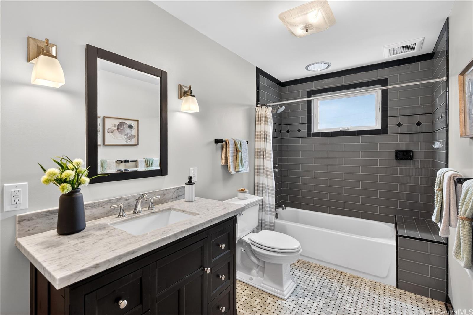 Tucked along a quiet lane in coveted Beachside Kalaheo, this LEED Gold–certified residence captures a rare balance of timeless island architecture and forward-thinking design. Built in 2014 by Mokulua High Performance Builders, the 5-bedroom, 3.5-bath home reflects a commitment to quality, comfort, and sustainability—showcasing rich hardwood floors, detailed millwork, and soaring 9-foot ceilings that create warm, understated elegance. Sunlight and tradewinds flow through open living spaces anchored by a beautifully appointed kitchen, while upstairs ocean views frame a serene primary retreat and flexible additional bedrooms. A semi-detached 1BR/1BA cottage with private entrance adds versatility for guests or extended family. Owned photovoltaic panels with Tesla Powerwall support efficient island living. Mere steps from Kailua Beach, where morning swims and sandy feet at sunset become part of daily life, this newer custom home offers a rare opportunity to experience refined coastal living.