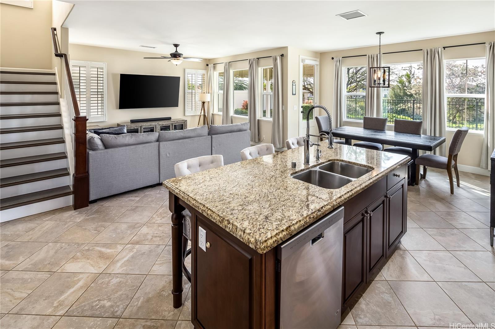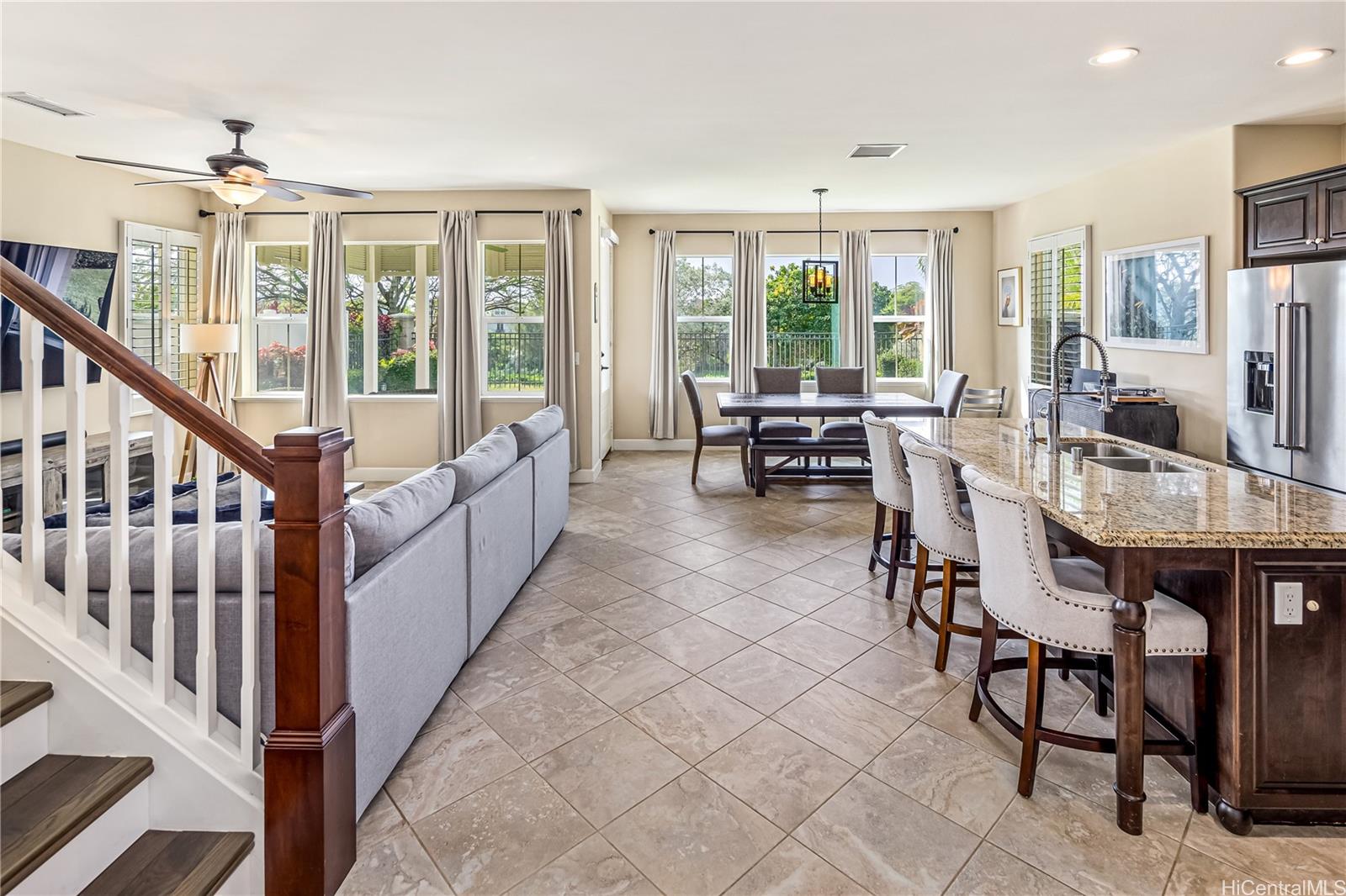 This well designed and meticulously maintained home on the world-renowned Hoakalei Golf Course is ideal for comfortable everyday living. It truly reflects “pride of ownership” from corner to corner and is offered in turnkey condition. A pre-listing inspection has already been completed and is available to serious buyers. The golf course view is serene and calming, whether you’re starting your morning with a cup of coffee or unwinding after a long day. Downstairs features a bedroom and full bathroom, offering flexibility for guests, multi-generational living, or a home office. The open kitchen looks out over the fairway and connects easily to the living and dining areas, creating a natural space to gather with the people you care about. Located in a secure, gated community with a tight-knit, welcoming feel, this property offers both comfort and peace of mind. At the same time, you’re just minutes from Laulani Shopping Center, Ka Makana Ali‘i Mall, Waikai facilities, Hoakalei Country Club, and more—everything you need close by, with the quiet of golf course living at home.
