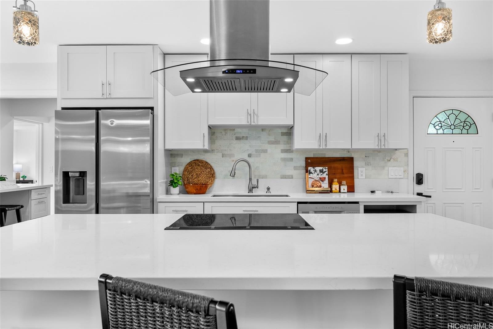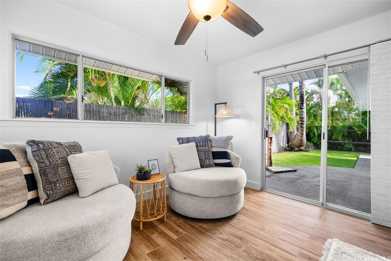 すぐにでも入居可能です!家全体に真新しい美しい板状のセラミックタイル床が敷かれています。吹き抜け天井のオープンコンセプトの間取り。リビングルームとダイニングルームの大きなスライド式ガラスドアが明るさと光を取り込みます。屋根付きの161平方フィートのラナイは、屋外と屋内が一体となったような感覚で生活空間を広げ、手入れの簡単な美しいトロピカルな造園が施されています。キッチンには、真新しいまたは比較的新しいステンレス製の電気製品、新しいキャビネット、クォーツカウンタートップ、深めのステンレス製ファームシンクが備わっています。メインの家は4ベッドルーム、2バスルームで、独立した入り口のあるロックアウトスタジオスイートがあり、合計5ベッドルーム、3バスルーム、2,067平方フィートの居住スペースがあります。すべてのバスルームは最近改装され、シャワーには魅力的なタイル、新しい洗面化粧台、ソリッドサーフェスカウンタートップが設置されています。2台分のガレージには十分な収納スペースがあります。18枚の所有PVパネルにより、電気代を大幅に削減できます。ハマクアドライブや、カイルアの素晴らしいレストラン、ショップ、ビジネス街にも近いです。カイルアビーチまで1.5マイル、ホノルル中心部まで12マイル、ホノルル国際空港まで19マイル。オープンハウス:3月29日午後2時~5時。