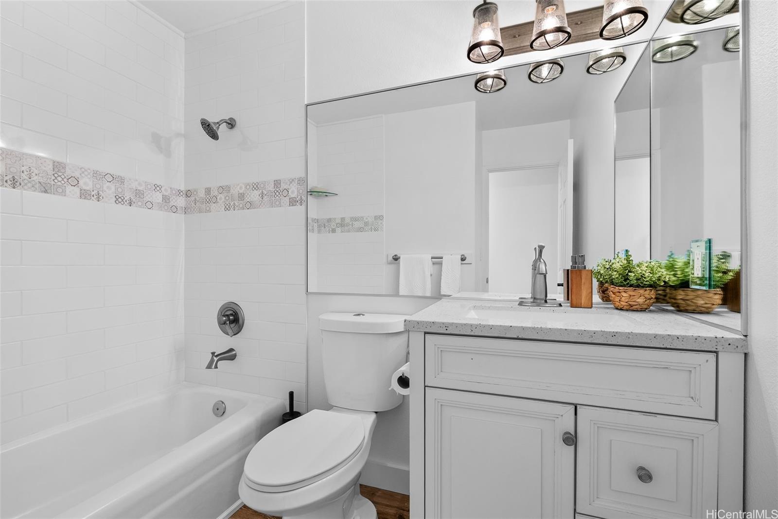 Completely ready to move right in! Brand new gorgeous plank ceramic tile floors throughout home. Open concept floor plan with vaulted ceilings. Large sliding glass doors in living room & dining room bring in brightness & light. Covered 161 sq ft lanai extends the living space with an outdoor/indoor feeling and lovely tropical, easy-to-care for landscaping. All brand new or newer stainless electric appliances in kitchen with newer cabinets, quartz countertops and deep, stainless farm sink. Main home is 4 bedrooms, 2 bathrooms with separate entry lockout studio suite for total of 5 bedrooms, 3 bathrooms and 2,067 sq ft of living space. All bathrooms have been recently updated with attractive tile in shower, new vanities & solid surface countertops. 2 car garage with ample room for storage. 18 owned PV panels help to offset the electric bill substantially. Close to Hamakua Drive and all the great Kailua restaurants, stores and businesses. 1-1/2 miles to Kailua Beach, 12 miles to downtown Honolulu and 19 miles to Honolulu International airport. Open House: March 29 @ 2-5pm.