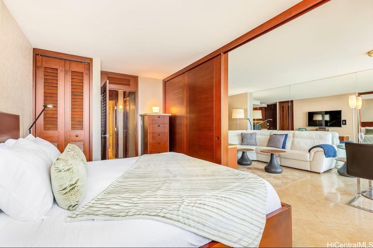 美しく家具が完備された1ベッドルーム、1バスルームのユニット。ハードウッドキャビネット、タイル張りの床、オープンコンセプトのキッチンを備えています。ラナイからは海と夕日の絶景を、毎週金曜の夜には花火もお楽しみいただけます。ワイキキ中心部の理想的なロケーションで、アラモアナ・ショッピングセンター、レストラン、人気のビーチまでわずか数分です。短期賃貸も可能で、投資物件としても、別荘としても最適です。