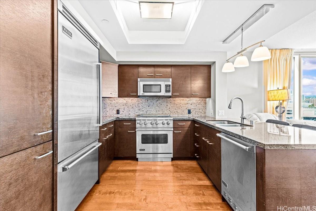 Highly desirable corner-end 2-bed, 2-bath with 1 covered parking luxury residence in Allure Waikiki. This rare floor plan is the lowest priced unit on the market, positioned well below market value and under the 2026 tax assessed value, presenting the best purchase opportunity in the building. The unit offers enhanced privacy and floor-to-ceiling L-shaped windows fill the home with abundant natural light. The spacious covered lanai showcases beautiful views of the Ala Wai Canal, city lights and mountain views. The open-concept living area flows into a gourmet kitchen featuring granite countertops and Viking stainless steel appliances. A long private entry hallway creates a grand sense of arrival while adding privacy, with the residence also including central AC. Allure Waikiki provides secure luxury living with key fob access, 24/7 security and concierge service. Resort-style amenities include a heated pool, jacuzzi, fitness center, BBQ areas, fire pit, recreation lounge, gardens, surfboard storage & guest parking. Ideally located at the entrance of Waikiki near beaches, dining, shopping, Ala Moana Center & Hawaii Convention Center. Exceptional value for a luxury corner-end home.