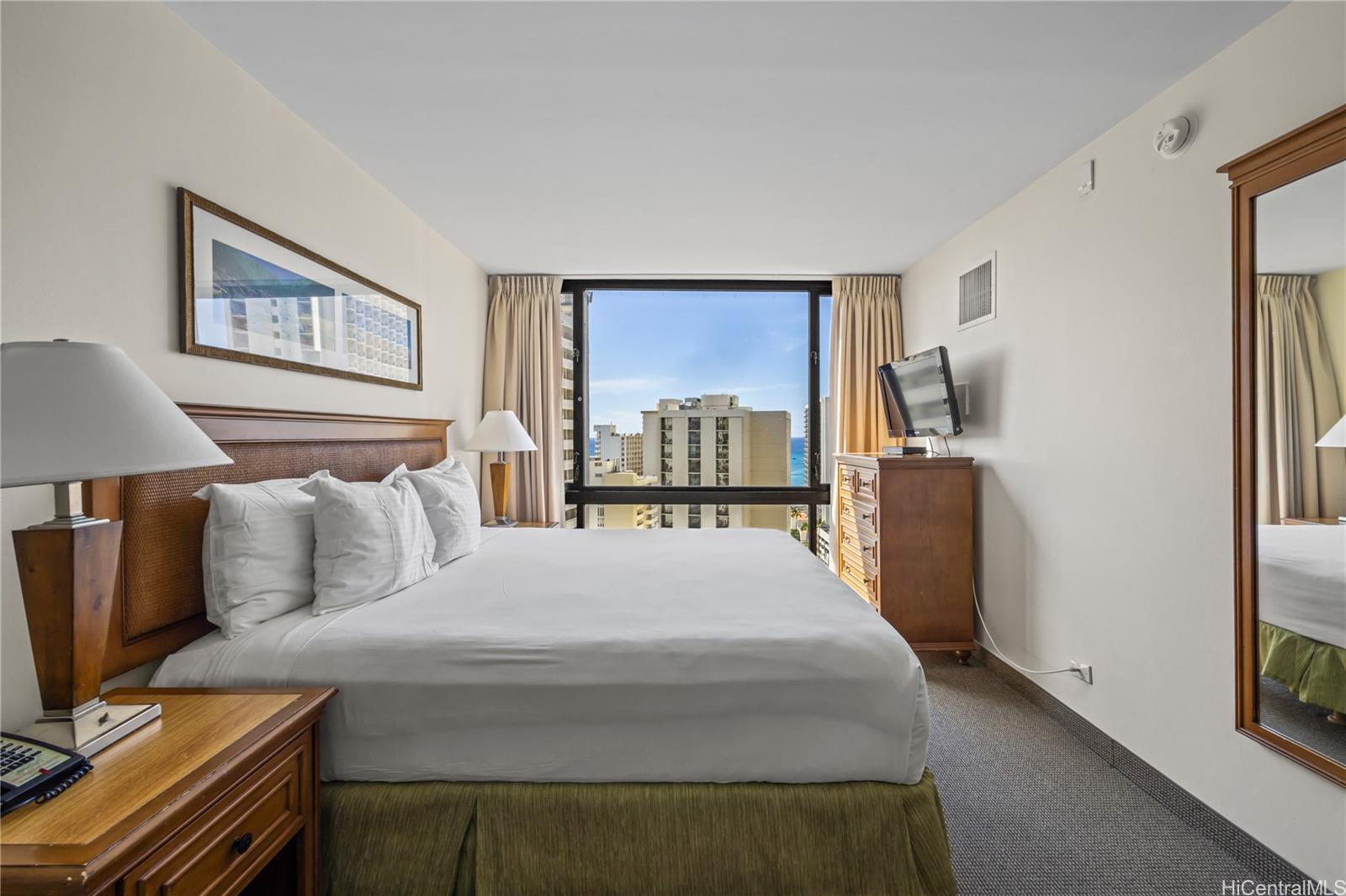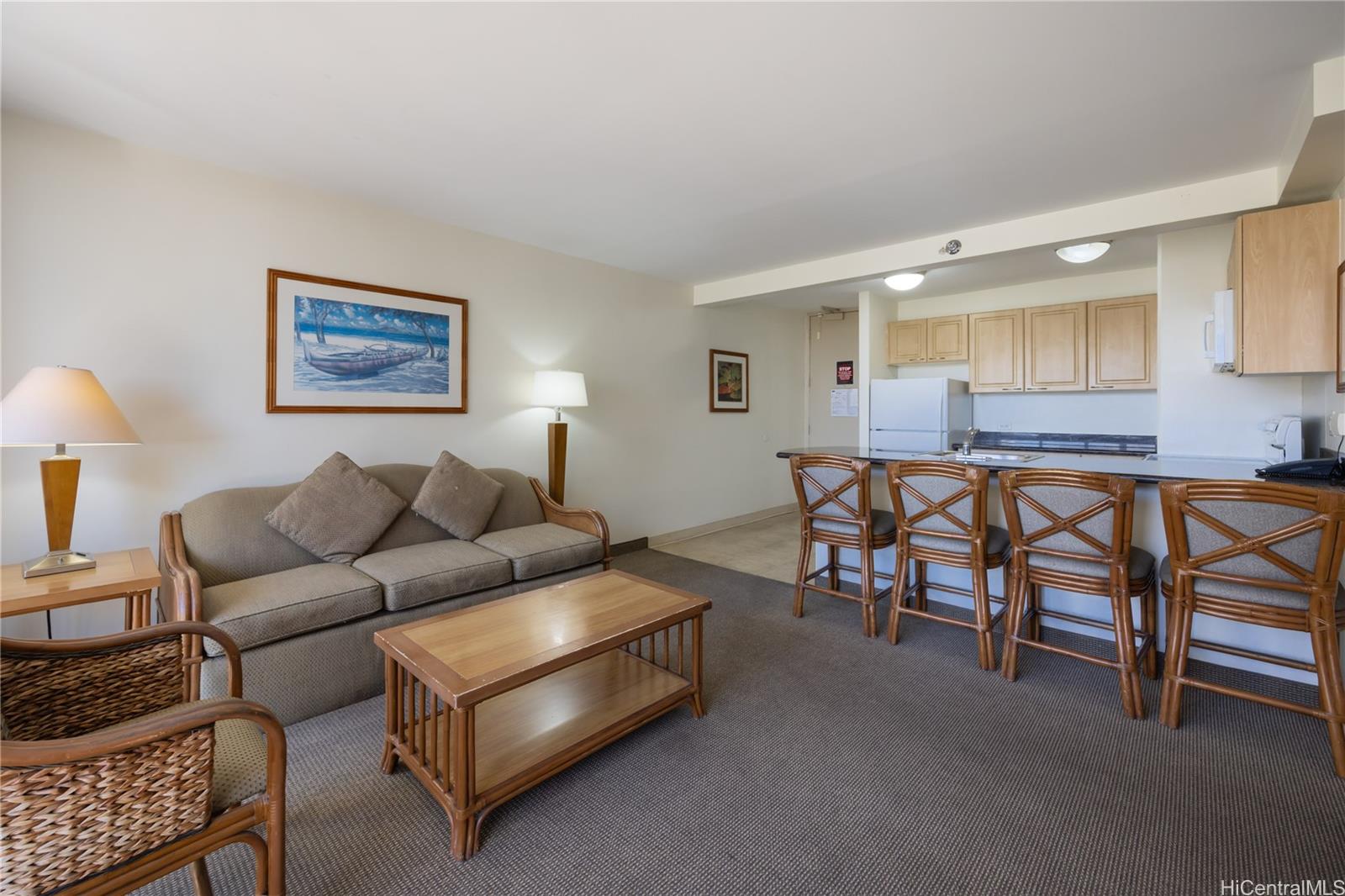 Discover the perfect opportunity to own a highly sought-after 1-bedroom unit in the popular Waikiki Sunset! This fully furnished hotel unit boasts the largest 1-bedroom floor plan, featuring a lanai and an open living/kitchen layout. Enjoy partial ocean and Diamond Head views! The unit is part of the hotel rental program with Aston Waikiki Sunset and has a NUC (Non-Conforming Use Certificate). Recent hotel upgrades in 2019 include new carpet, fresh paint, and the removal of popcorn ceilings, ensuring a modern and comfortable living space. The building offers great amenities such as BBQ facilities, a pool, community laundry, an exercise room, and 24-hour security. Located in a prime area, you'll be close to the world-famous Waikiki Beach, Kapiolani Park, the zoo, restaurants, shopping, and much more.