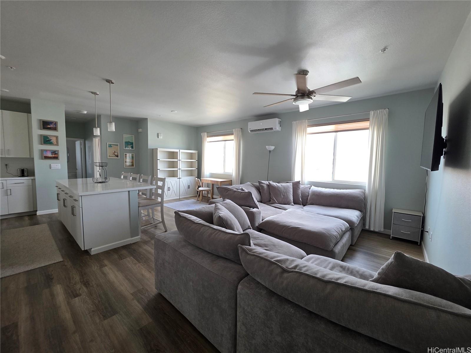 Discover easy, modern living in this larger-than-typical beautifully maintained 1-bed, 1-bath condo in the heart of Ho‘opili. This home features an open-concept layout, split A/C, stainless steel appliances, in-unit laundry, and thoughtful finishes throughout. Large windows bring in great natural light, creating a bright and inviting space.