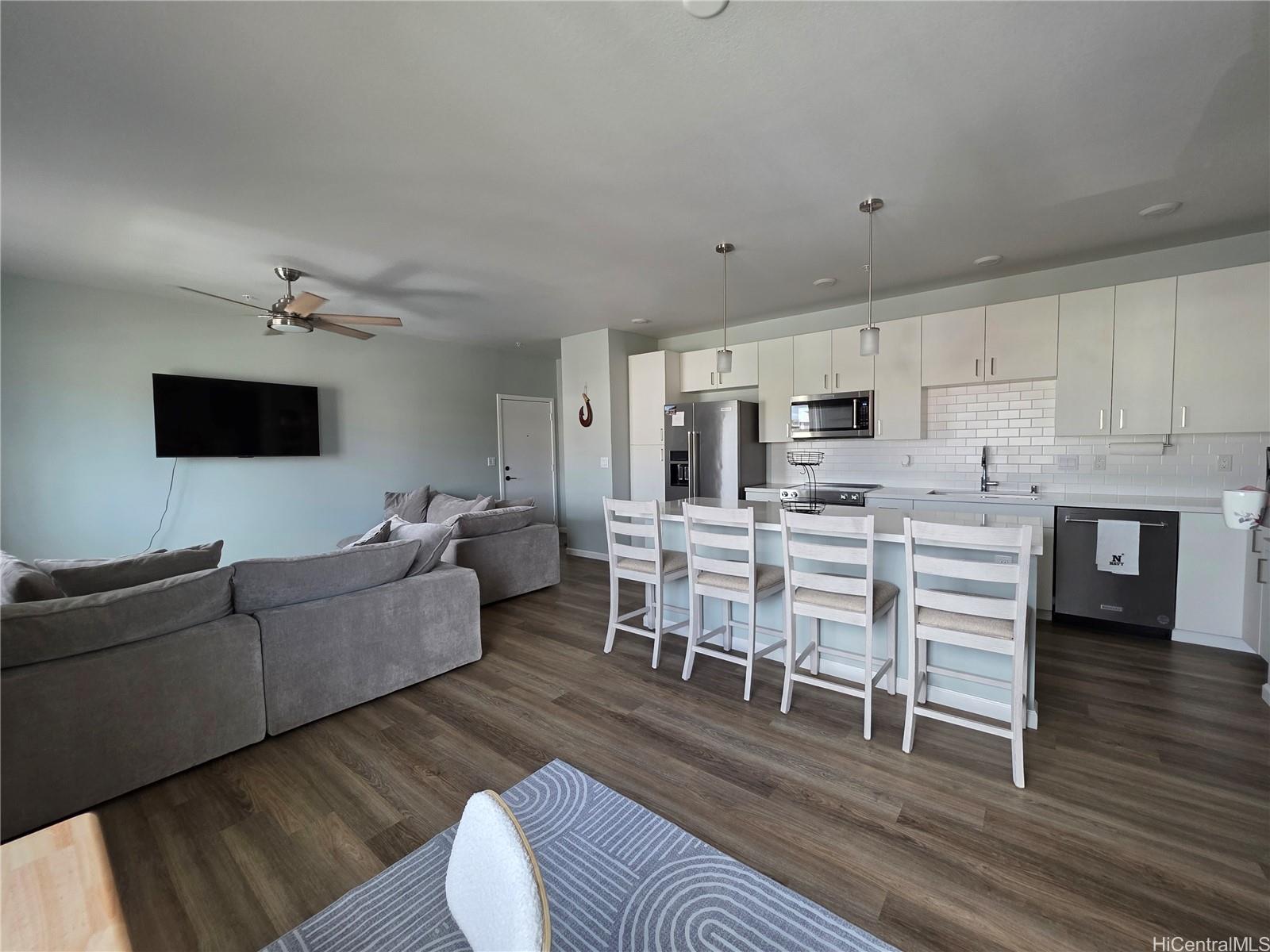 ホオピリ中心部に位置する、通常よりも広く、美しく手入れされた1ベッドルーム、1バスルームのコンドミニアムで、快適でモダンな暮らしをお楽しみください。オープンコンセプトのレイアウト、スプリットエアコン、ステンレス製の家電、室内ランドリー、そして隅々まで行き届いた仕上げが特徴です。大きな窓からたっぷりと自然光が差し込み、明るく居心地の良い空間を演出します。西オアフで最も急速に成長しているコミュニティの一つに位置し、プール、公園、遊び場、ドッグパーク、コミュニティイベントなど、リゾートスタイルのアメニティをお楽しみいただけます。カ・マカナ・アリイ、鉄道駅、ハワイ大学西オアフ校、高速道路へのアクセスも便利なこの物件は、快適さと交通の便の両方を提供します。初めて住宅を購入する方、ダウンサイザーの方、活気があり歩きやすい地域で手入れの手間のかからないライフスタイルを求める方に最適です。販売時には壁掛けテレビとバーチェア4脚が含まれます。