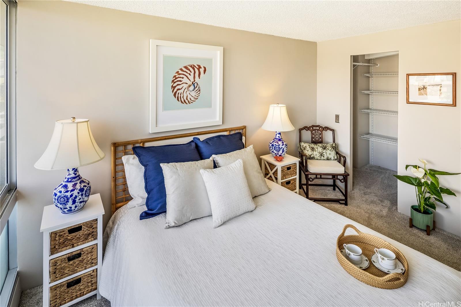 180 degree views through an expanse of windows that fill the home with natural light and island breezes. Available for the first time in 17 years, this bright and airy condo exudes a sophisticated yet effortlessly relaxing vibe. Located in a boutique building where units are seldom available moments from Honolulu’s vibrant city center—restaurants, medical facilities, government offices, the state library, art museums, and the concert hall are all within easy reach. Whether you’re looking to live close to work, enjoy arts and culture, or simply cut down on commute time, this home delivers the perfect balance of convenience and comfort. And with views and ambiance like this, you may just find yourself wanting to stay in and savor every moment at home.