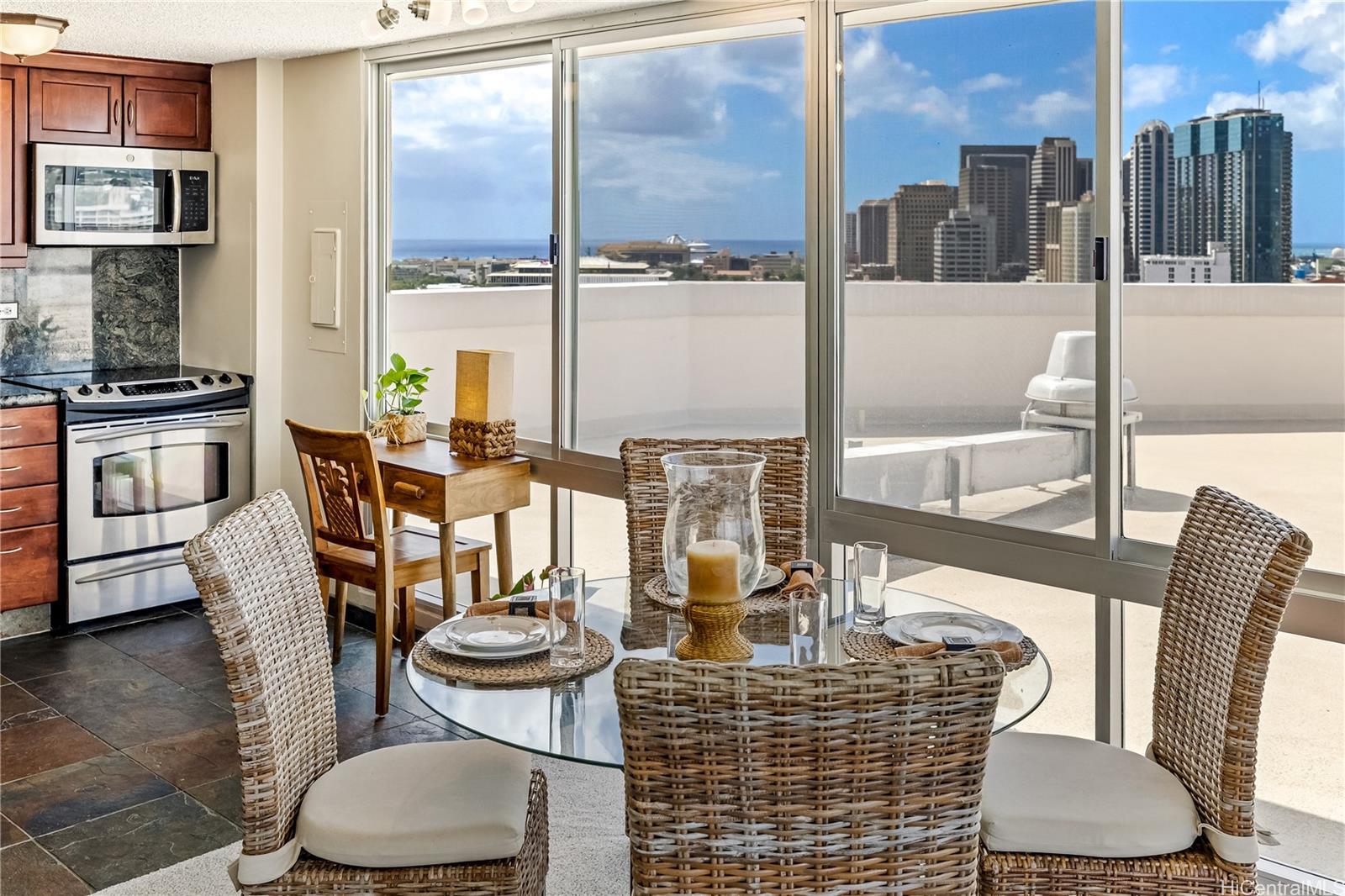 広々とした窓から180度の眺望が広がり、自然光と島の風が家の中に満ち溢れます。17年ぶりに販売開始となったこの明るく開放的なコンドミニアムは、洗練された雰囲気でありながら、気取らないリラックス感を醸し出しています。ホノルルの活気あふれる市内中心部からすぐの、希少なブティックビルに位置し、レストラン、医療施設、官公庁、州立図書館、美術館、コンサートホールなど、あらゆる施設が至近距離にあります。職場に近い暮らし、アートや文化を楽しみたい方、通勤時間を短縮したい方など、あらゆるニーズに応えるこの物件は、利便性と快適さを完璧に両立させています。この眺望と雰囲気に浸れば、ついつい家で過ごしたい、ひとときを心ゆくまで味わいたくなるはずです。