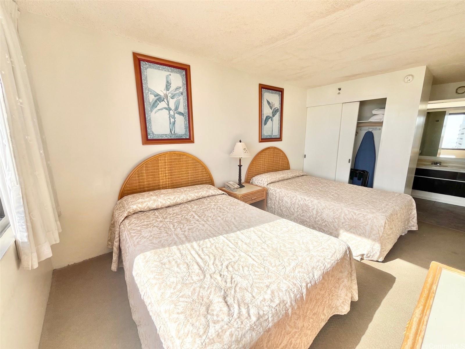 Rare high floor with a beautiful ocean view unit! Fully furnished 1 bedroom, 1 bathroom. Currently in the hotel rental program! Convenient location near the beach, park, zoo, shop and restaurants. Sold "AS-IS." Renovate as you please.