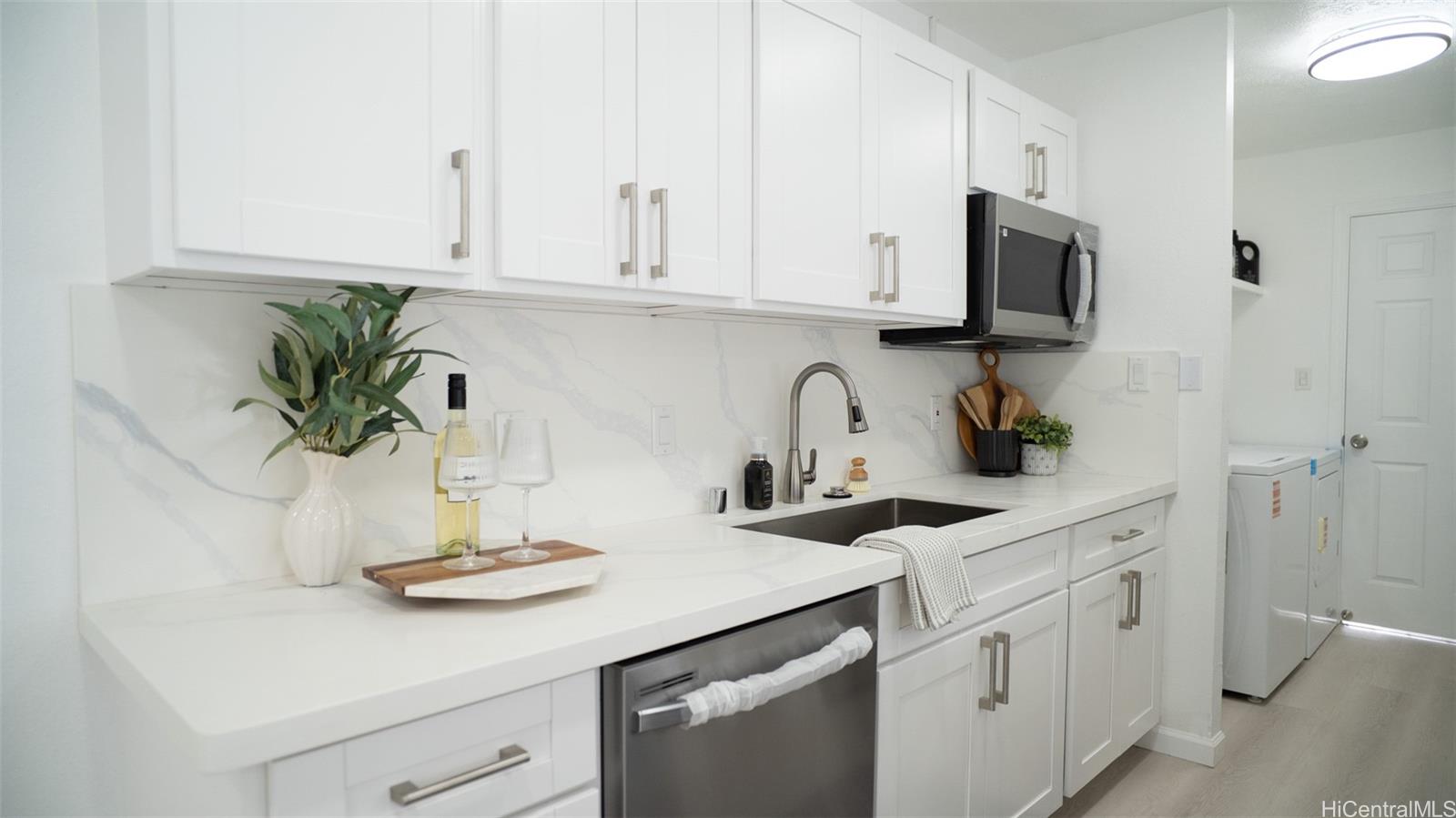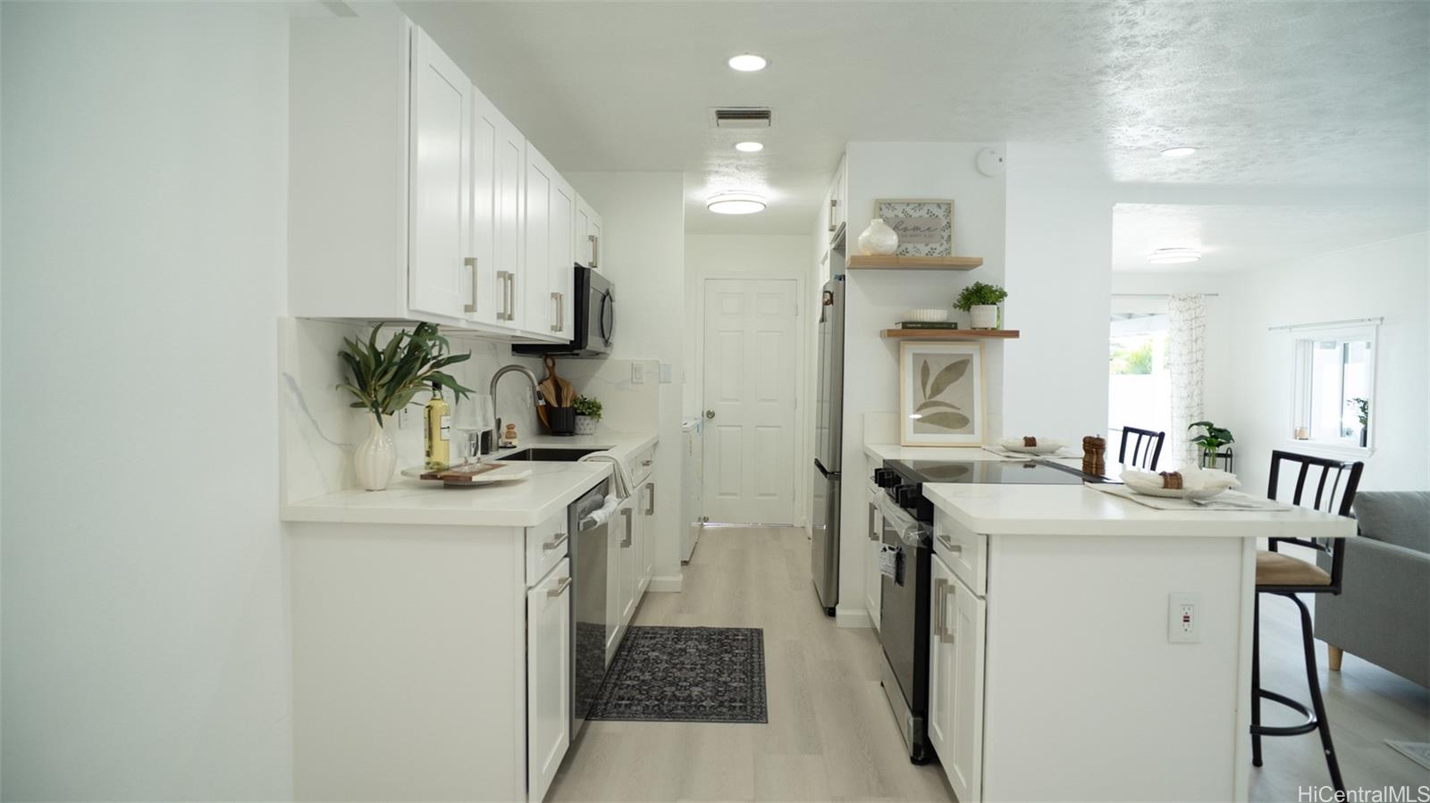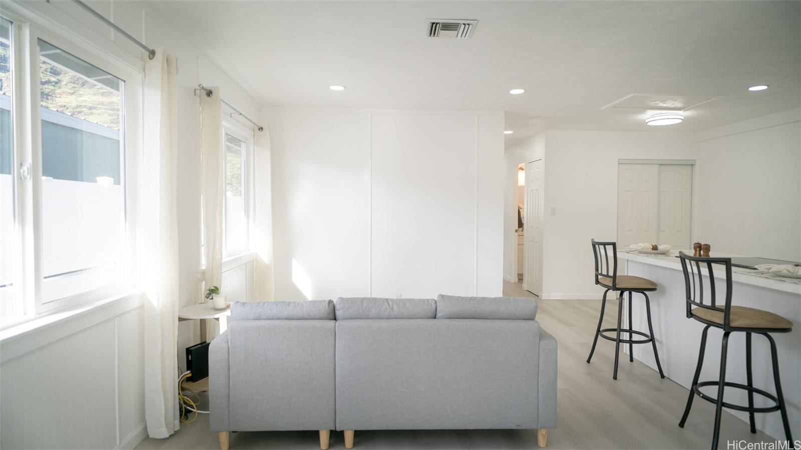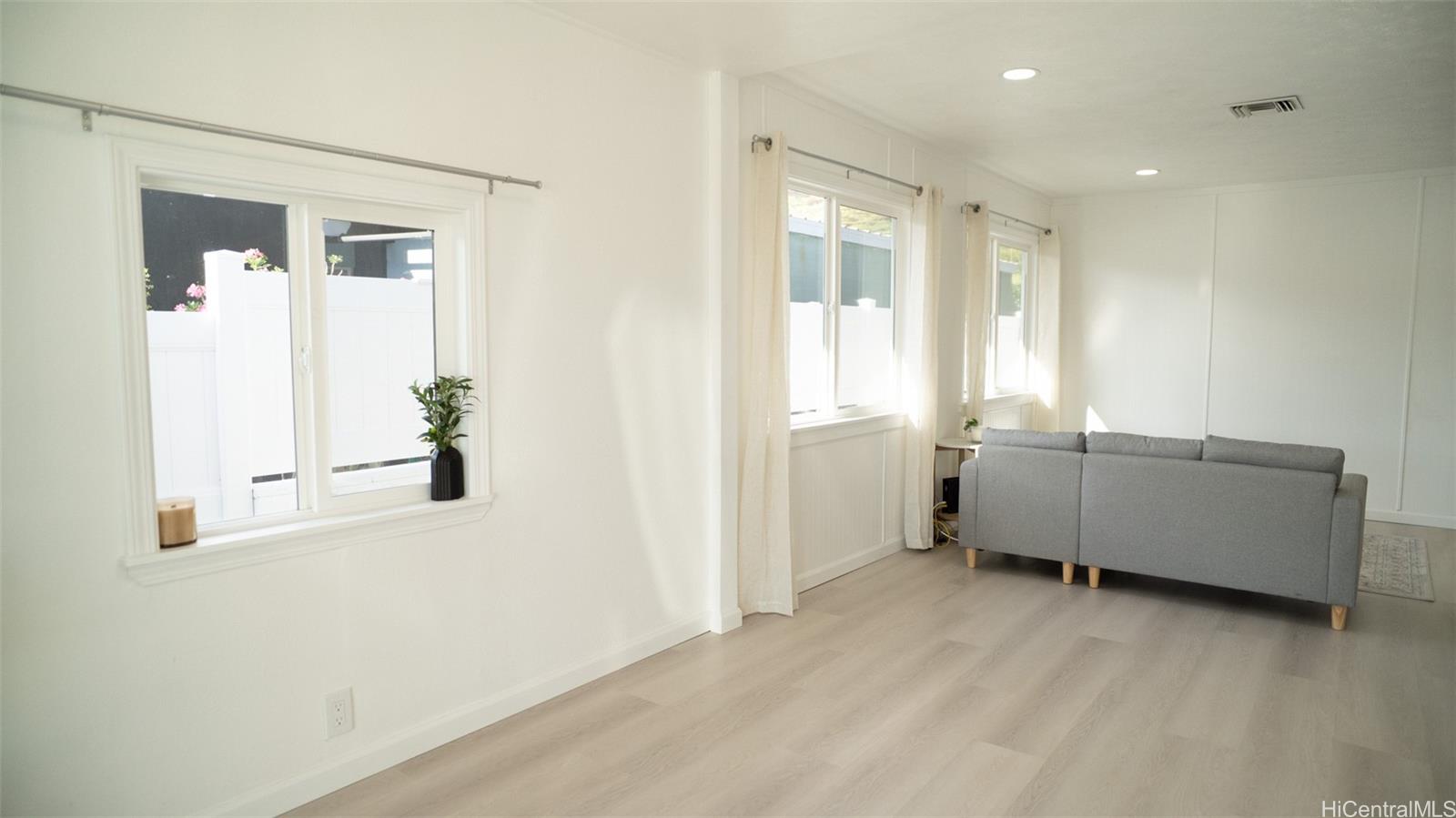 Discover modern island living at its finest in this beautifully fully renovated home. Completely refreshed from top to bottom, this gem offers a fresh, contemporary feel with high-end updates throughout—no detail has been overlooked. Step inside to cool comfort with central air conditioning and sleek luxury vinyl plank flooring that flows seamlessly through the open living spaces. The heart of the home shines with an all-new kitchen featuring stainless steel appliances, perfect for everyday meals or entertaining aloha-style. Outside, enjoy enhanced privacy and security with a brand-new vinyl fence, new gated entry, and a professional security system for peace of mind. The freshly paved driveway adds curb appeal and convenience, while the property's location offers easy access to Waianae's stunning beaches, hiking trails, local markets, and the laid-back West Side vibe. Ideal for first-time buyers, families, or those seeking a low-maintenance, move-in-ready retreat on Oahu's Leeward Coast. Don't miss this rare opportunity!
