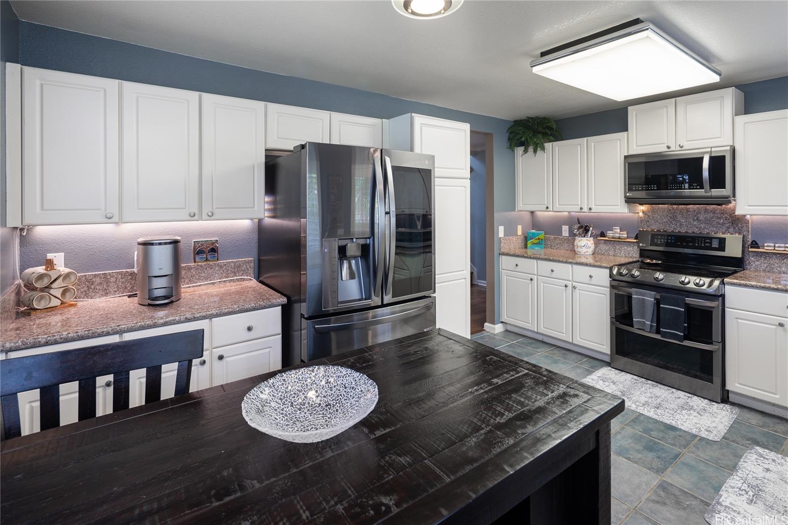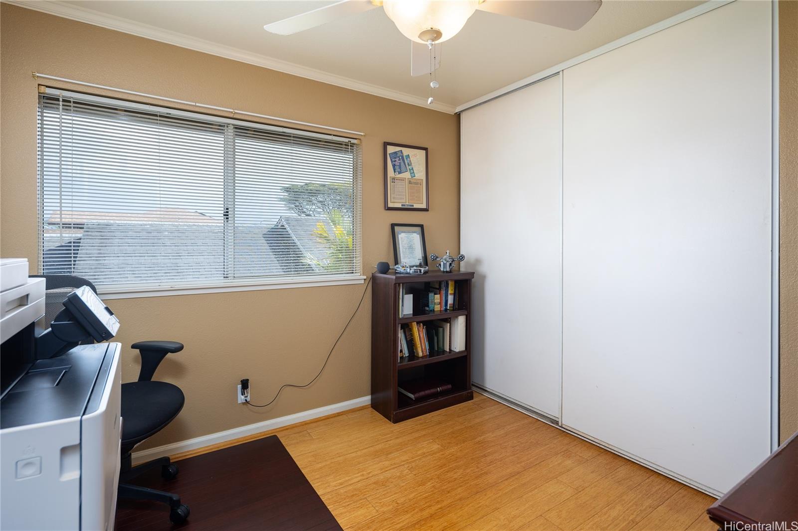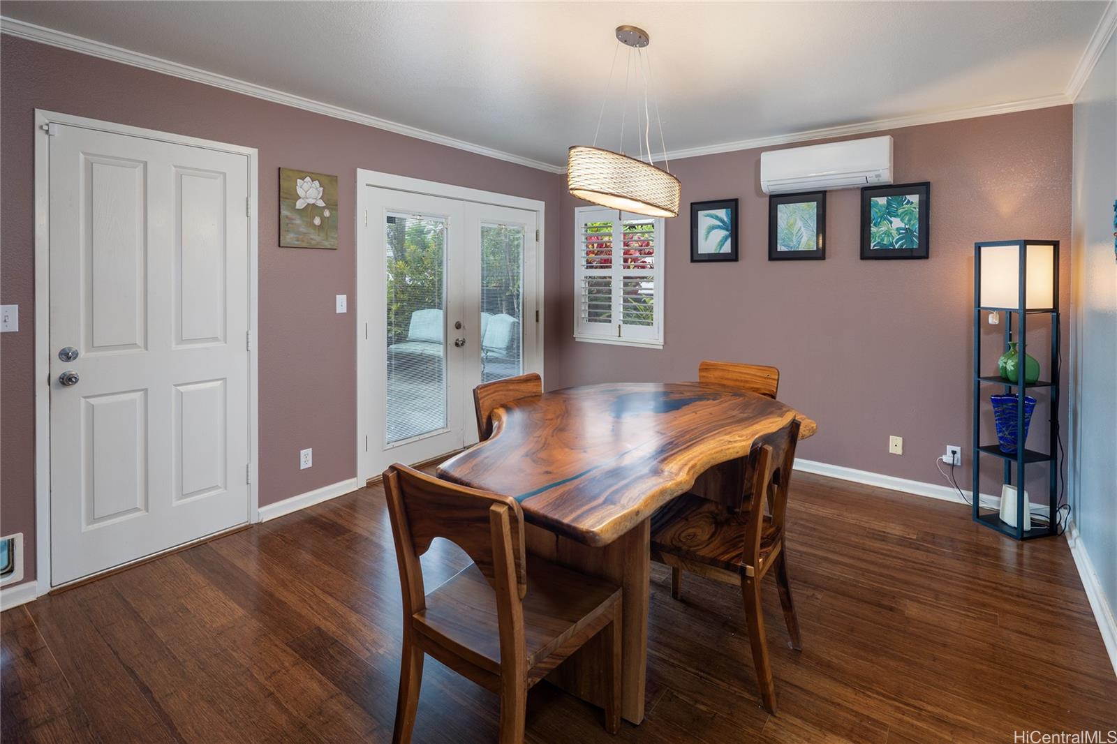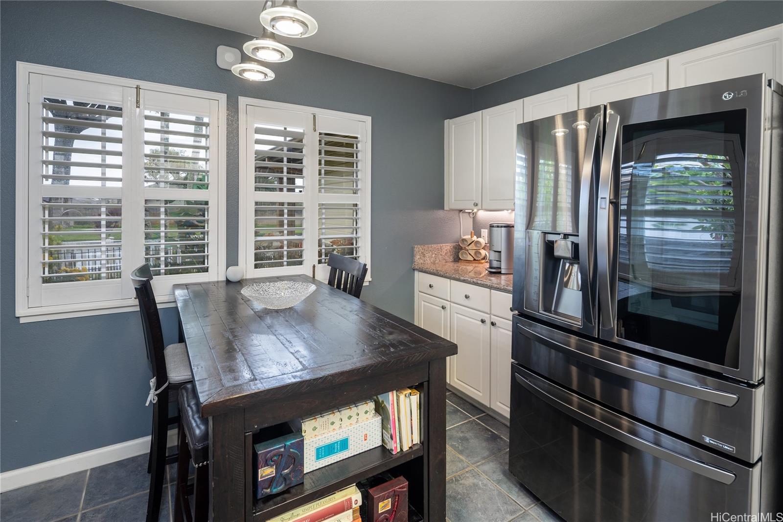Welcome to your 2-story single-family home situated on a quiet cul-de-sac in the highly desirable Millilani Mauka neighborhood. This 3-bedroom, 2.5-bath home features beautiful bamboo flooring throughout and 31 owned solar (PV) panels paired with a battery backup system. Downstairs includes a spacious dining room with French doors leading to the courtyard, an expansive living area, the kitchen, and a powder room. The eat-in kitchen is equipped with modern appliances, ample cabinetry, and coffee station. Upstairs, the primary suite has an updated en-suite bath and mirrored closets. Updated hall bath and two more rooms offer flexibility as a bedroom or dedicated home office. Enjoy the courtyard, or unwind on the front lanai, taking in Hawaiian breezes. Residents benefit from membership in the Mililani Town Association offering access to recreation centers, swimming pools, parks, playgrounds, and walking paths. Conveniently located near shops, highly rated schools, freeway access, and major military installations including Schofield Barracks and Wheeler Army Airfield. A rare opportunity to own a move-in ready home in one of Central Oahu’s most established master-planned communities.
