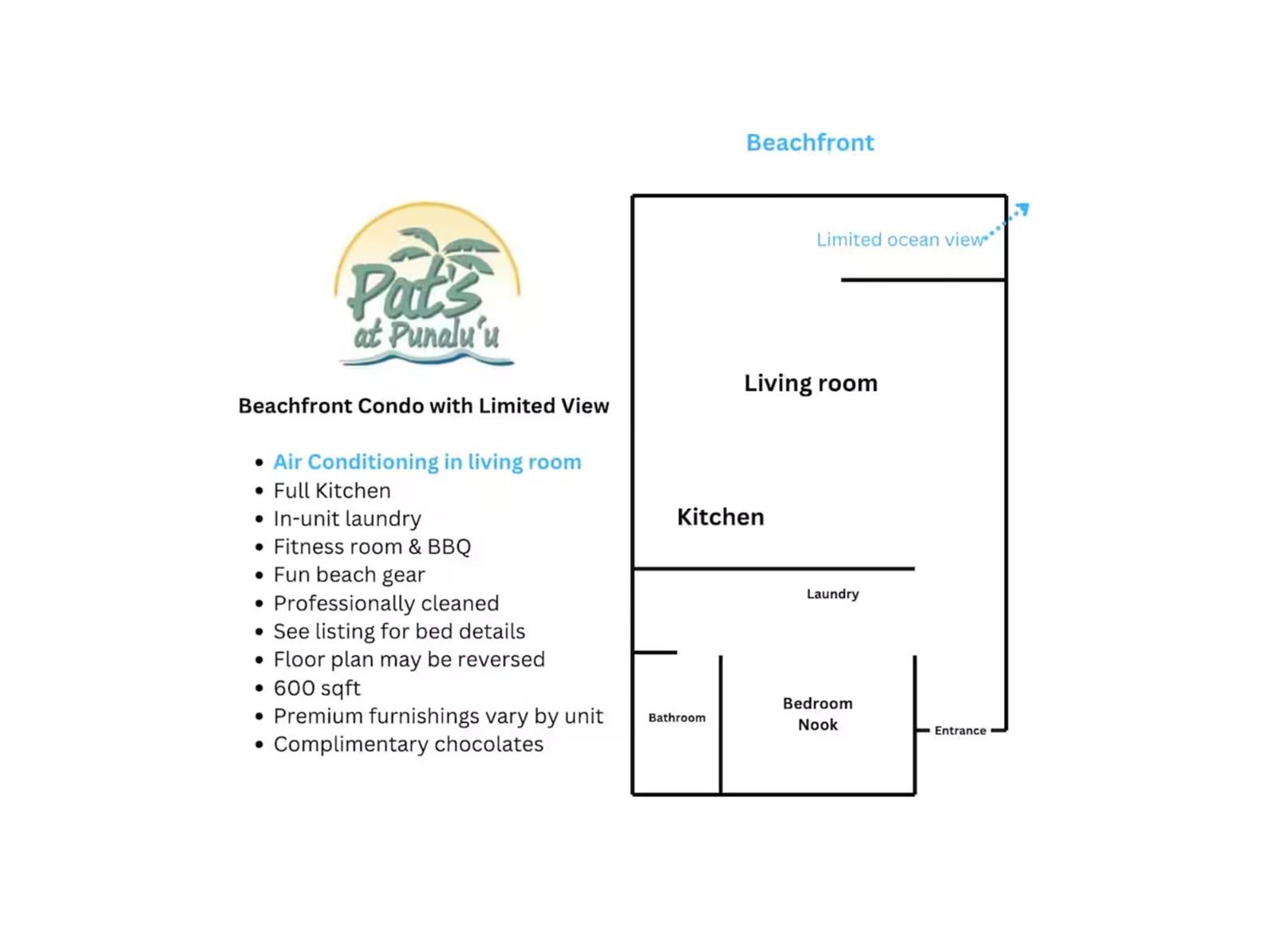 パッツ・アット・プナルウ #204で、海の音とともに目覚めましょう。ビーチフロントの1ベッドルーム、1バスルームのこのリトリートは、静かなトロピカルな環境の中で、息を呑むような海岸線と山々の景色をお楽しみいただけます。ユニットにはフルキッチン、快適なリビングスペース、専用駐車場が備わっており、常住、週末の小旅行、または投資機会として最適です(購入者は賃貸ガイドラインをご確認ください)。砂浜に直接足を踏み入れ、揺れるヤシの木の下でリラックスしながら、オアフ島のカントリーコーストのゆったりとしたライフスタイルをお楽しみください。プール、オーシャンフロントのバーベキューエリア、フィットネスセンター、セキュリティ付きのエントランス、美しく整備された敷地などのアメニティも完備しています。街の利便性を享受しながら、喧騒を離れた真のアイランドライフをご体験ください。