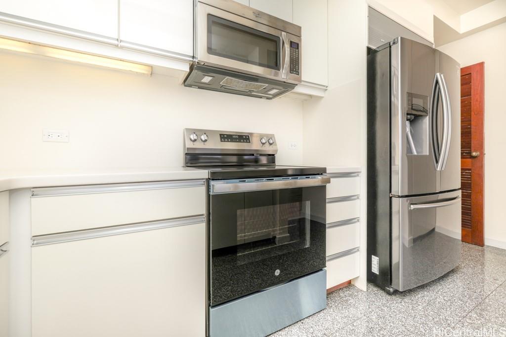 カイムキ・パークサイドで滅多に空室のないペントハウス!オーナーの誇り!天井の高いこの住宅は、3ベッドルーム、2バスルームを備えています。天井から床まで届く大きな窓は、広々としたリビングルームと約300平方フィートの屋根付きラナイと繋がっています。一日中、ダイヤモンドヘッドの美しい景色をお楽しみいただけます。広々とした主寝室には、ビルトインの引き出し、ウォークインクローゼット、そして追加のクローゼットが備わっています。床は全面に新しく設置された高級ビニールフローリングです。ステンレス製の電化製品を備えた、よく手入れされたキッチン、キッチンの隣には洗濯機/乾燥機を備えたランドリールームがあります。ロビー入口近くには、並列2台分の駐車スペースがあります。このブティックビルはセキュリティが確保され、管理も行き届いており、管理費もリーズナブルです。1フロアに2ユニットのみ。レストランやショップにも近く、便利な立地です。H-1のオン/オフランプへのアクセスも良好です。お近くの不動産会社にご連絡の上、今すぐご予約ください!