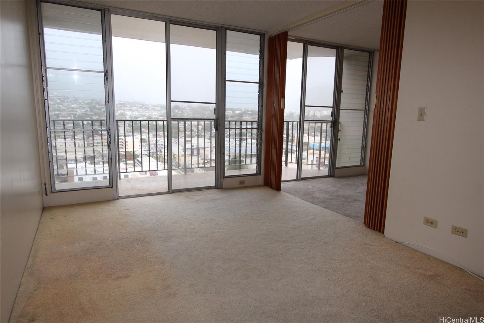 Contractor Special or fairly easy one to tackle for Do-It-Yourselfers! This one bedroom + Den apt has NEWER Plumbing (building was repiped in Nov 2023), is Fully Insured, has NO Litigation & NO Assessments! Fire Alarm System was installed in mid-2024! To be sold "As Is" but has new paint, newer heater, toilet, garbage disposal, range hood, kitchen countertop, S/S kitchen sink & faucet and lower kitchen cabinets. All kitchen and den renovation work was done in Nov-Dec 2023 because of a big leak in a pipe in the lower kitchen cabinet. Shower stall was renovated in Feb 2023. High floor End unit with covered parking stall. Kitchen & bathroom floor tiles are original VA tile. OK to wear shoes in apt when showing but please exercise caution to not disturb the floor tiles. Please note the protective covering over the bathroom broken tile. Very easy to show with short notice.
