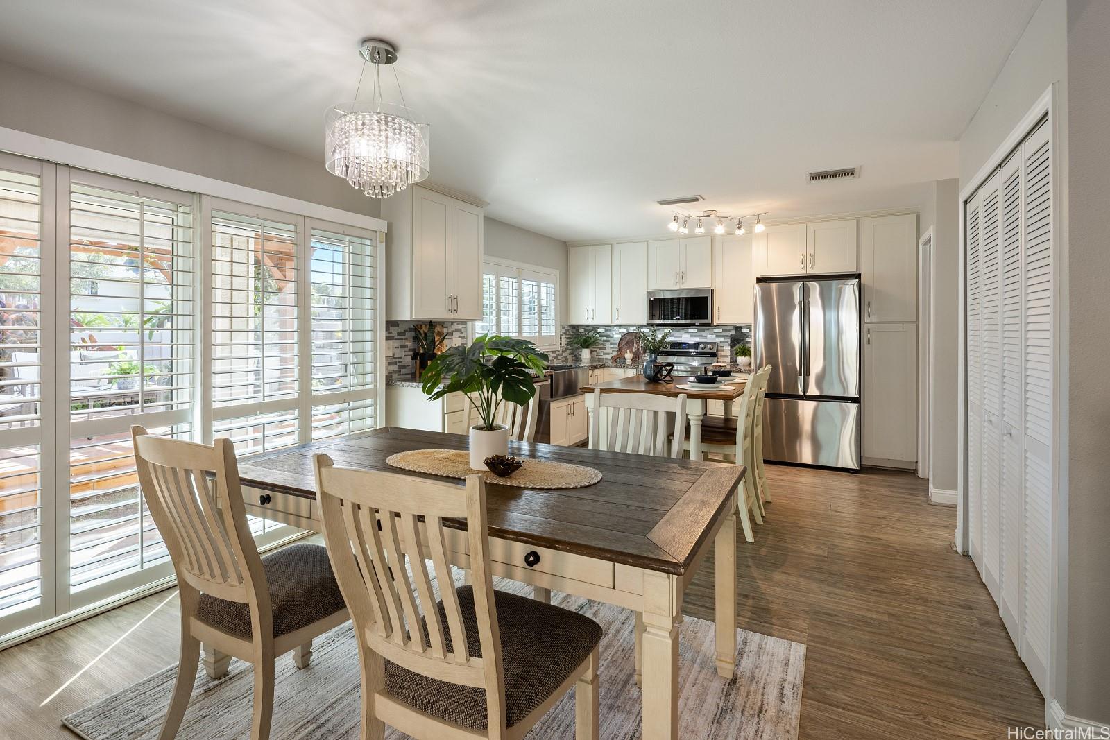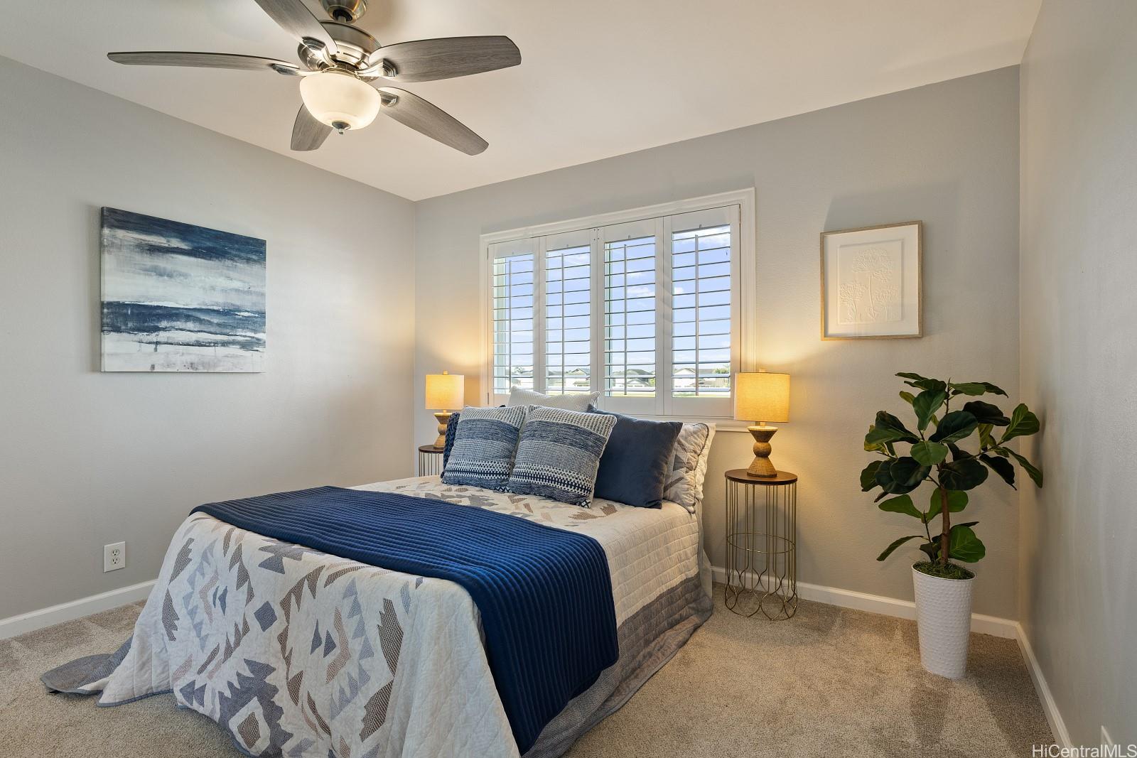 Check out this 3 bedroom, 2.5 bath home in Ewa Beach offering over 1,500 square feet of comfortable living space paired with standout upgrades that add long-term value. Key renovations include a newer roof and central air conditioning system, plus an owned photovoltaic system with 26 PV panels and two Tesla Powerwall batteries which helps to significantly reduce energy costs. A 240-volt outlet adds convenience for electric vehicle charging. The home also features newer stainless steel Samsung Wi-Fi appliances, and all-new double-pane windows with UV coating for improved comfort and efficiency. All bathrooms have new lighting, faucets, and medicine cabinets, upstairs bathroom cabinets are refinished, and the downstairs cabinet is new. Outdoors, enjoy a landscaped yard with irrigation, fruit trees galore, a covered lanai and deck with pergola, creating an inviting space for relaxing or entertaining. Located not too deep within the community, this home offers easy access to major roads, shopping, dining, and nearby beaches—making it a smart choice for buyers seeking great value, space, and efficiency. A BONUS transferable home warranty is included.