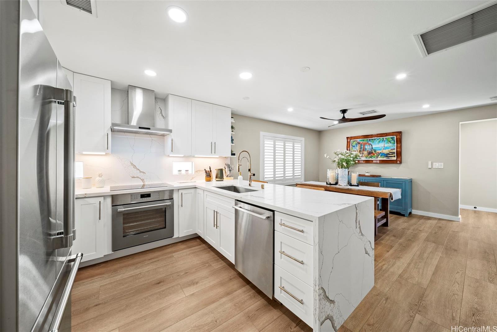 誰もが憧れるホアカレイ・カマカナ・コミュニティで、アイランドライフを満喫してください。この改装済みの平屋建て3ベッドルーム、2バスルームの住宅は、購入後、大規模な改修とカスタム変更が施されています。快適さを追求したこの住宅は、幅広の高級ビニール床、デザイナー照明、そしてエンターテイメントに最適な明るいオープンコンセプトのレイアウトを誇っています。シェフズキッチンには、広々としたウォークインパントリー、たっぷりとした収納スペース、そしてIHクッキングヒーター付きのプレミアムサーモダー家電が備わっています。各ベッドルームは、スプリットエアコンとカスタムデザインのクローゼットを備え、プライベートな隠れ家として機能します。完成した2台用ガレージには、エポキシフローリング、埋め込み式照明、EV充電器に加えて、3台分の追加駐車スペースがあります。エネルギーに配慮したアップグレードには、リースされた20枚の太陽光発電パネル、テスラバッテリー、太陽熱温水器が含まれます。外装には、フルレインゲートと自動化された前庭と裏庭の灌漑が備わっています。プール、フィットネスセンター、ホットタブ、テニスコート、ピックルボールコートなど、リゾートスタイルのアメニティをお楽しみください。Spectrumケーブルとインターネットも含まれています。LineUp at Wai Kaiやチャンピオンシップゴルフコースから数分という理想的な立地にあるこの物件は、贅沢さと効率性、そしてアイランドライフが融合した空間です。