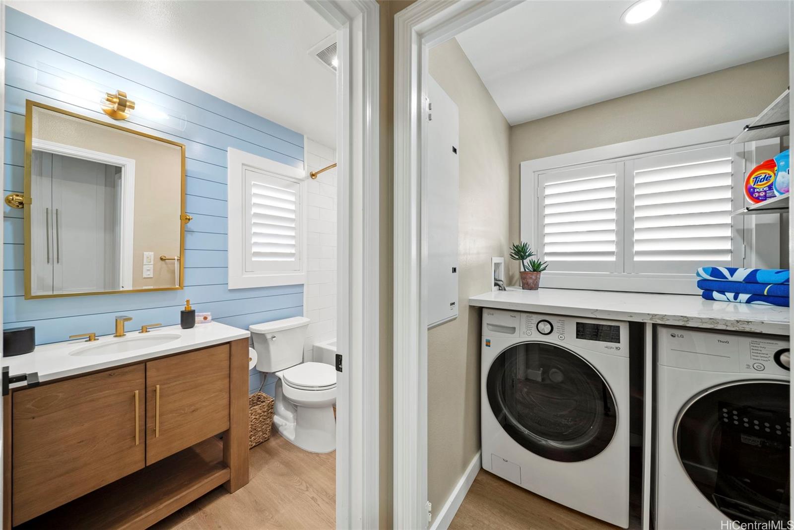 Experience island living in the coveted Hoakalei Kamakana community. This upgraded single-story 3-bedroom, 2-bath residence features extensive enhancements and custom modifications completed since purchase. Designed for comfort, the home showcases wide-plank luxury vinyl flooring, designer lighting, and a bright open-concept layout ideal for entertaining. The chef’s kitchen offers a spacious walk-in pantry, generous storage, and premium Thermador appliances with an induction cooktop. Each bedroom serves as a private retreat with split A/C systems and custom-designed closets. The finished two-car garage includes epoxy flooring, recessed lighting, and an EV charger, plus an additional parking pad for three spaces. Energy-conscious upgrades include 20 leased photovoltaic panels, a Tesla battery, and a solar water heater. Exterior features include full rain gutters and automated front and backyard irrigation. Enjoy resort-style amenities including a pool, fitness center, hot tub, tennis and pickleball courts, with Spectrum cable and internet included. Ideally located minutes from LineUp at Wai Kai and championship golf courses, this home blends luxury, efficiency, and island livingNow