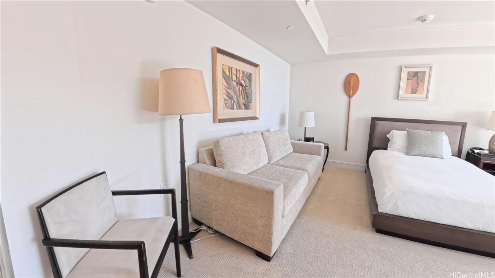 Experience luxurious island living at Ka La'i, part of the prestigious Hilton LXR Hotels & Resorts collection, recently enhanced with a beautiful renovation and fresh new look. This spacious 510 sq. ft. studio features stunning ocean views and a private lanai overlooking the iconic pink Royal Hawaiian Hotel. The open layout offers exceptional comfort and functionality, and the residence comes fully furnished-including dinnerware—so you can simply bring your suitcase and start enjoying your island getaway. Complimentary valet service for owners adds ease and convenience to your everyday experience.