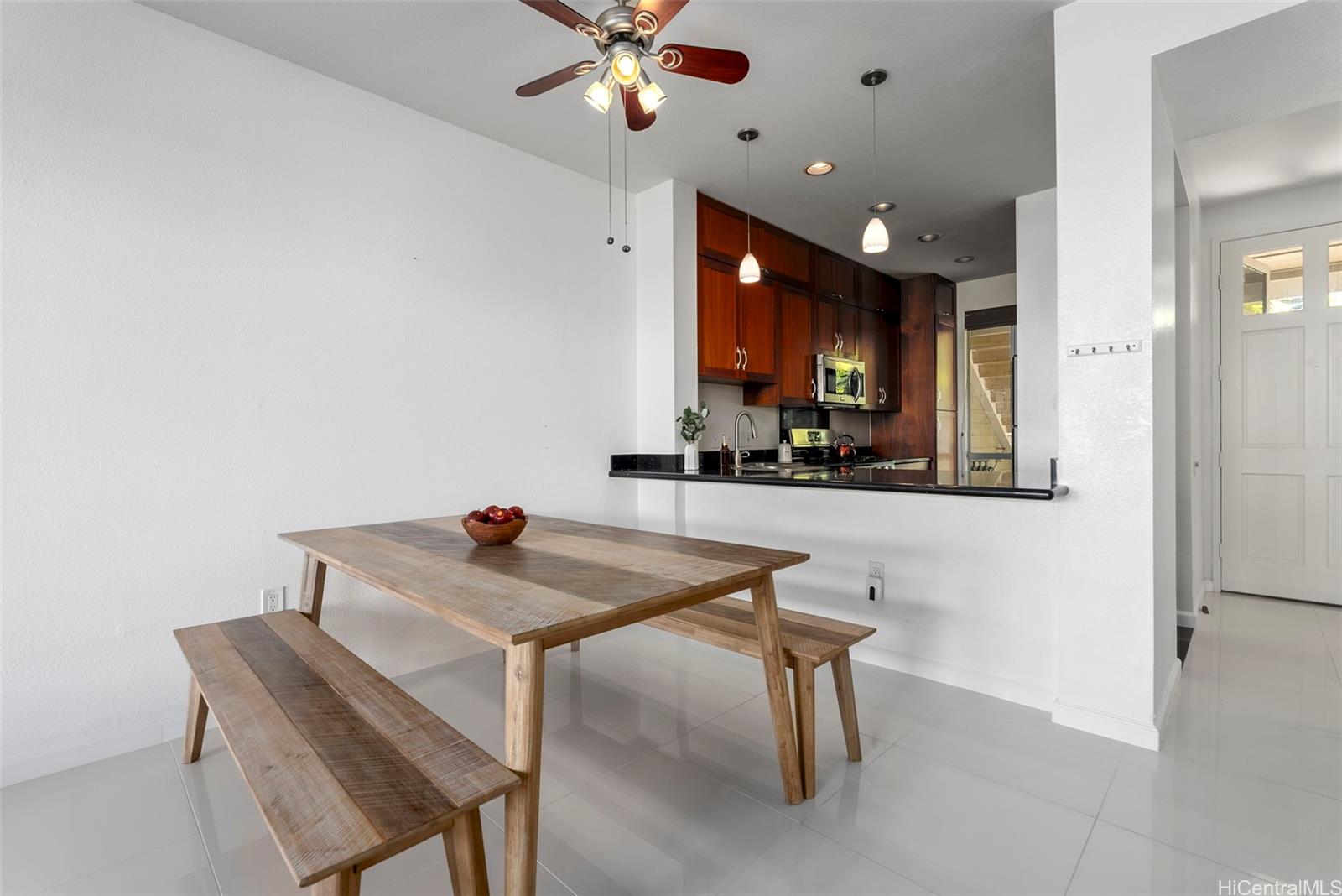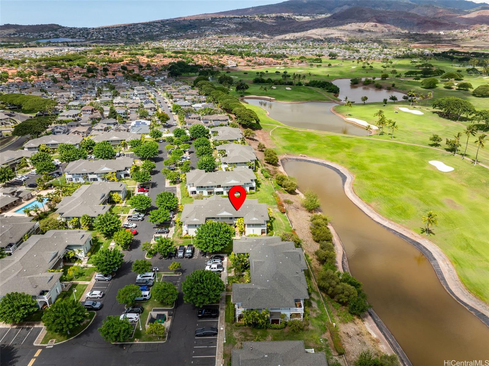 Don’t miss this gorgeously updated ground-floor townhome in the well-maintained Kekuilani Villas. This delightful 2-bedroom, 1-bathroom home with 2 assigned parking stalls features desirable golf course views overlooking Kapolei Golf Course. Inside, enjoy an updated kitchen and bathrooms, tile flooring throughout, and high ceilings that create a bright and airy atmosphere. Residents also enjoy access to community amenities including a pool and BBQ area, along with ample guest parking for family and friends. Conveniently located near Ka Makana Ali‘i Mall, shops, eateries, boutiques, daily necessities, and the rail, this move-in ready home offers the perfect blend of comfort and lifestyle.
