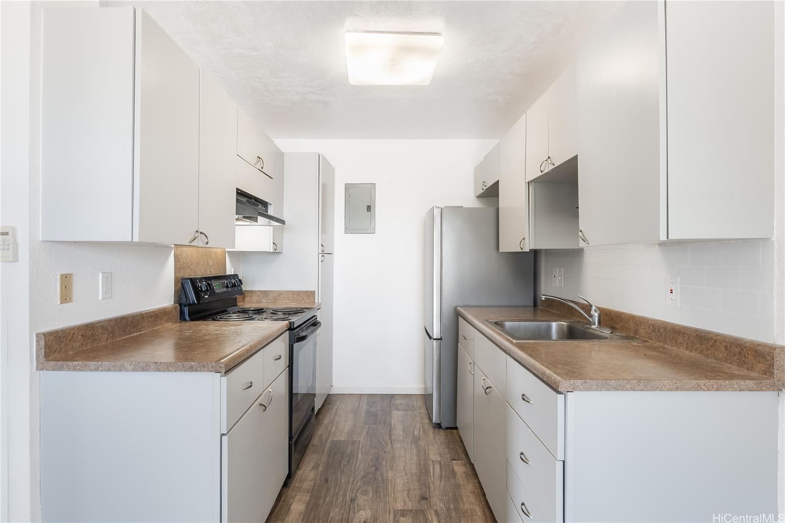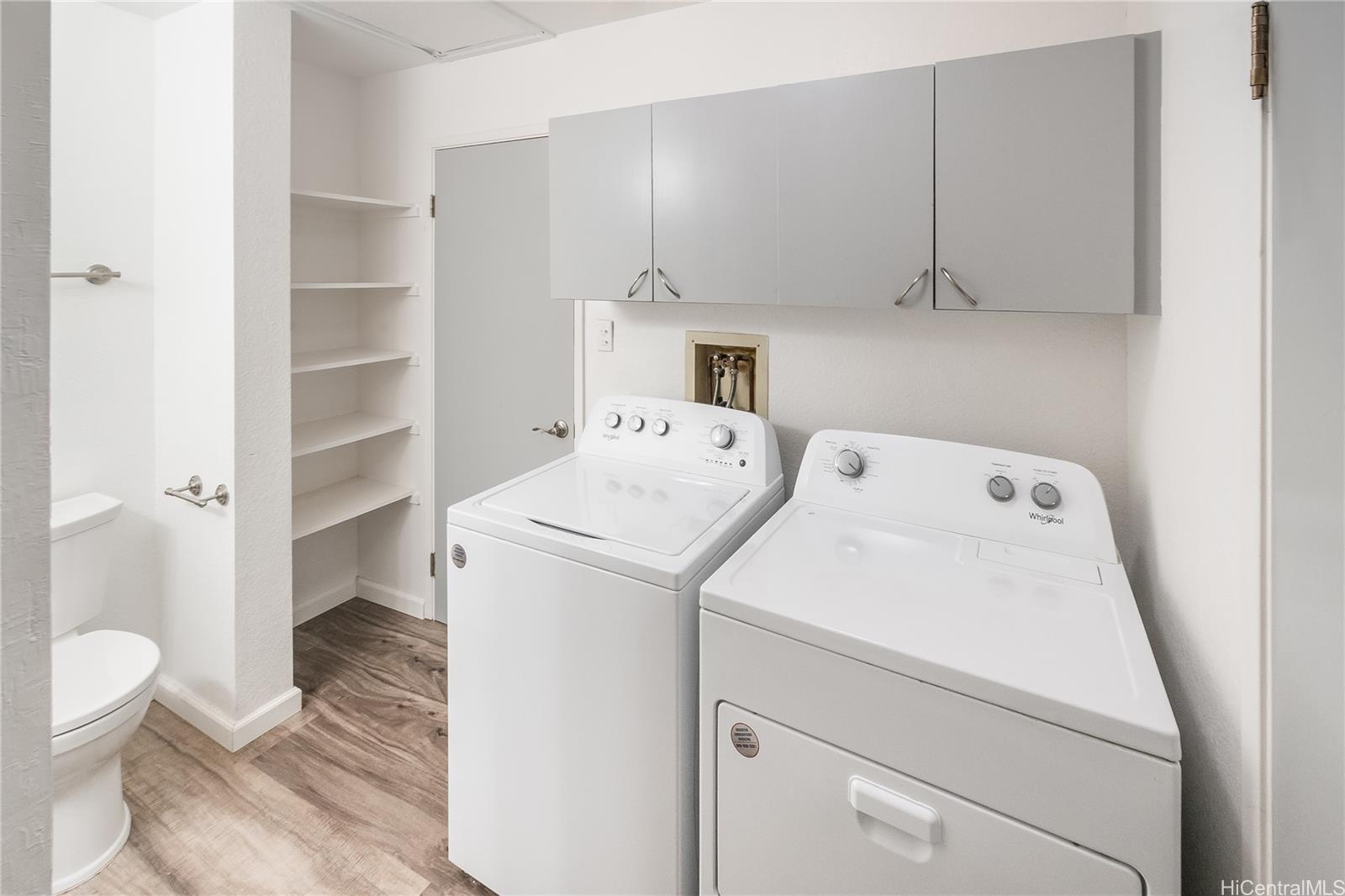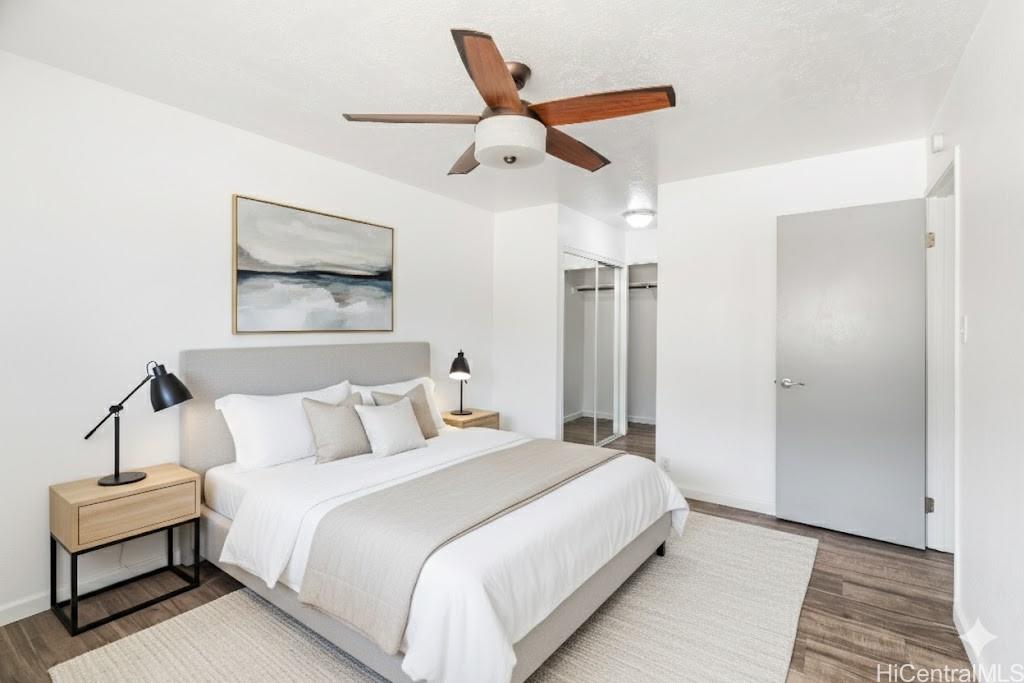Best priced fee simple 2-bedroom opportunity in Waipio Gentry. This corner/end unit features updated flooring, fresh interior finishes, and a bright open layout filled with natural light. Enjoy mountain views from your private lanai along with the convenience of in-unit laundry and assigned parking. Located in a well-maintained community near shopping, dining, freeway access, and military bases. Move-in ready condition offering strong value.