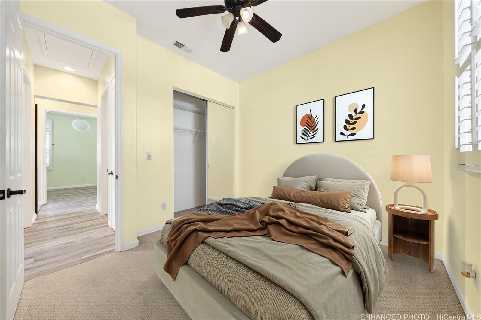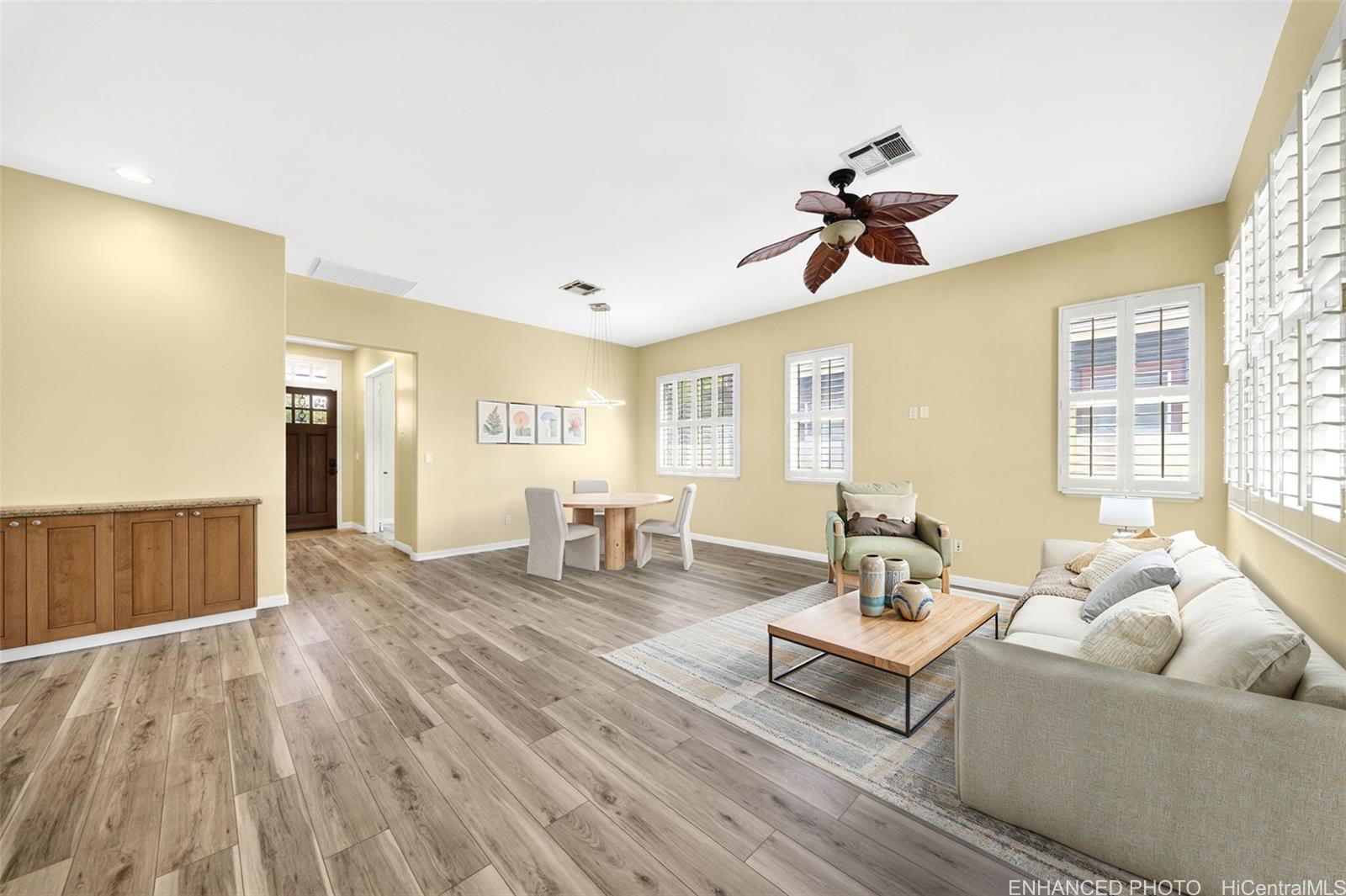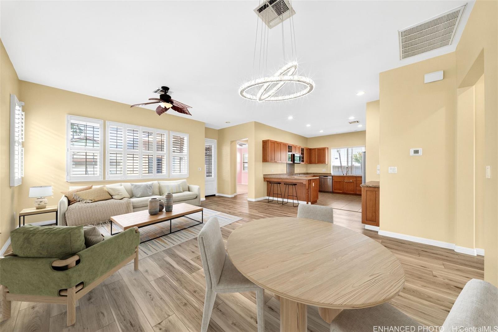 ホアカレイ・カ・マカナにある、真の平屋住宅を所有できる稀有な機会です。公園に面した理想的な立地で、遮るもののない緑豊かな景色を一望でき、駐車車両が間口を邪魔することはありません。手入れの行き届いた3ベッドルーム、2バスルームのこの住宅は、高い天井とオープンコンセプトのレイアウトが特徴で、明るくモダンなアイランドライフを演出します。アップグレードには、内外装の塗り直し、リビングルームの床とモールディングのアップグレード、照明の更新、ステンレス製の家電製品と新しい電子レンジ、全面ガラス張りのシャワーブース、交換済みの給湯器が含まれます。エネルギー効率も抜群で、自社所有の24枚の太陽光発電パネルと太陽熱温水器により、電気代を大幅に削減できます。セキュリティアラームシステムも設置済み。セントラルエアコンは2025年4月にフルメンテナンスされます。週末はコミュニティプールやバーベキューパビリオンで過ごしたり、ホアカレイカントリークラブ近くのビーチやゴルフを楽しんだりできます。ショッピング、ダイニング、映画鑑賞もカ・マカナ・アリイからわずか数分です。内覧のご予約は、エージェントまでお問い合わせください。このような機会は滅多にありません。