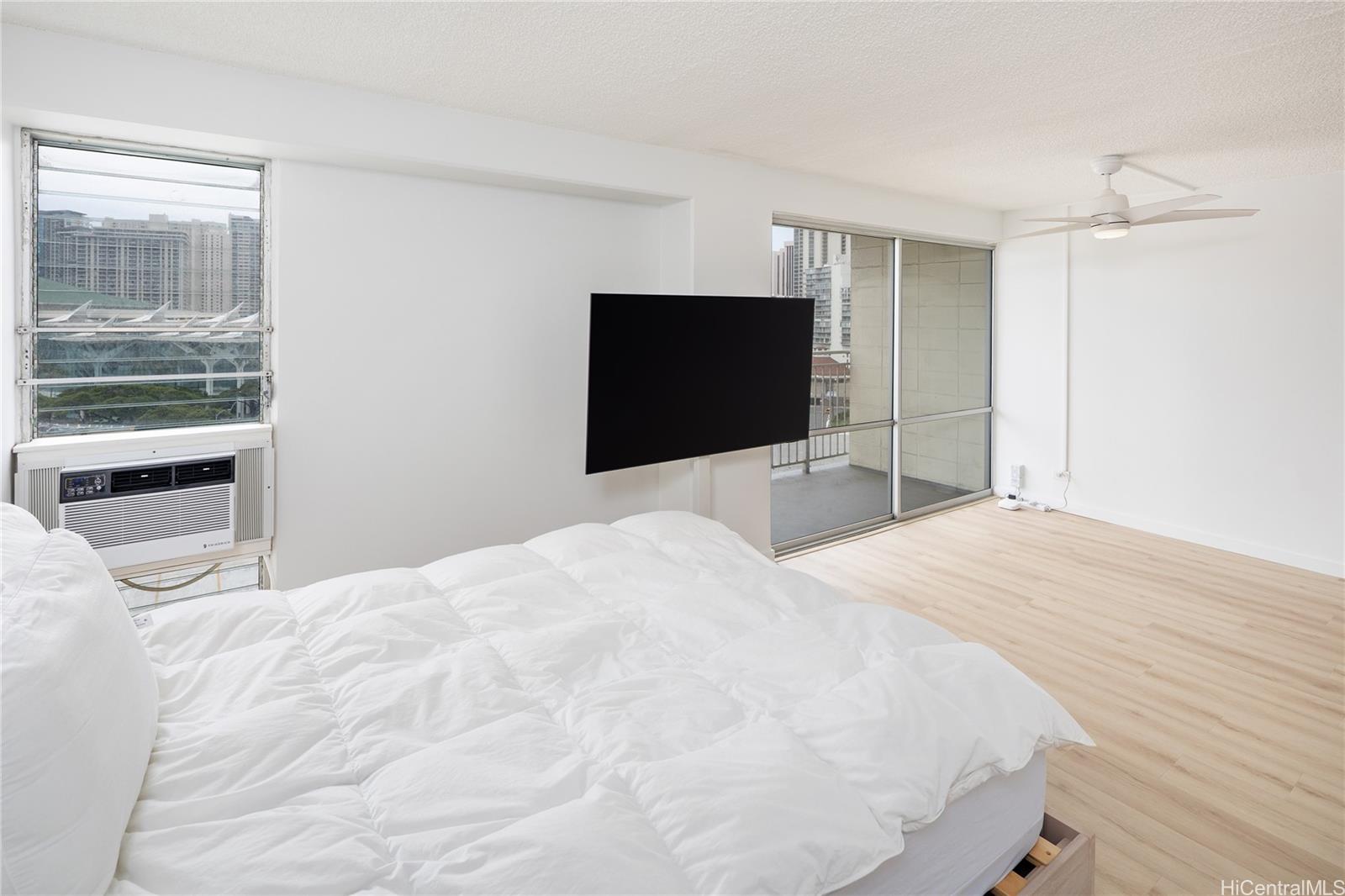 Preferred “10” stack at Kapiolani Manor with sweeping Diamond Head, ocean, mountain, and city views. This 1-bedroom is bright, clean, and move-in ready with fresh white paint, newer flooring, a brand-new refrigerator, and your own private lanai to take it all in—including live fireworks every Friday night. Enjoy all the upgrades, a sparkling pool, and rare secured, covered, and assigned parking with additional storage. The building offers cabanas, a resident manager, and secured entry, with a maintenance fee that conveniently covers electricity, internet, sewer, and water—making ownership simple and stress-free. Ideally positioned on the preferred Diamond Head side, you’re minutes from Don Quijote, Ala Moana Shopping Center, beaches, dining, and freeway access. Easy to live in, easy to rent, and easy to love. Special Incentive: Seller to credit Buyer at closing an amount equal to the first year of HOA dues (based on current HOA rate).