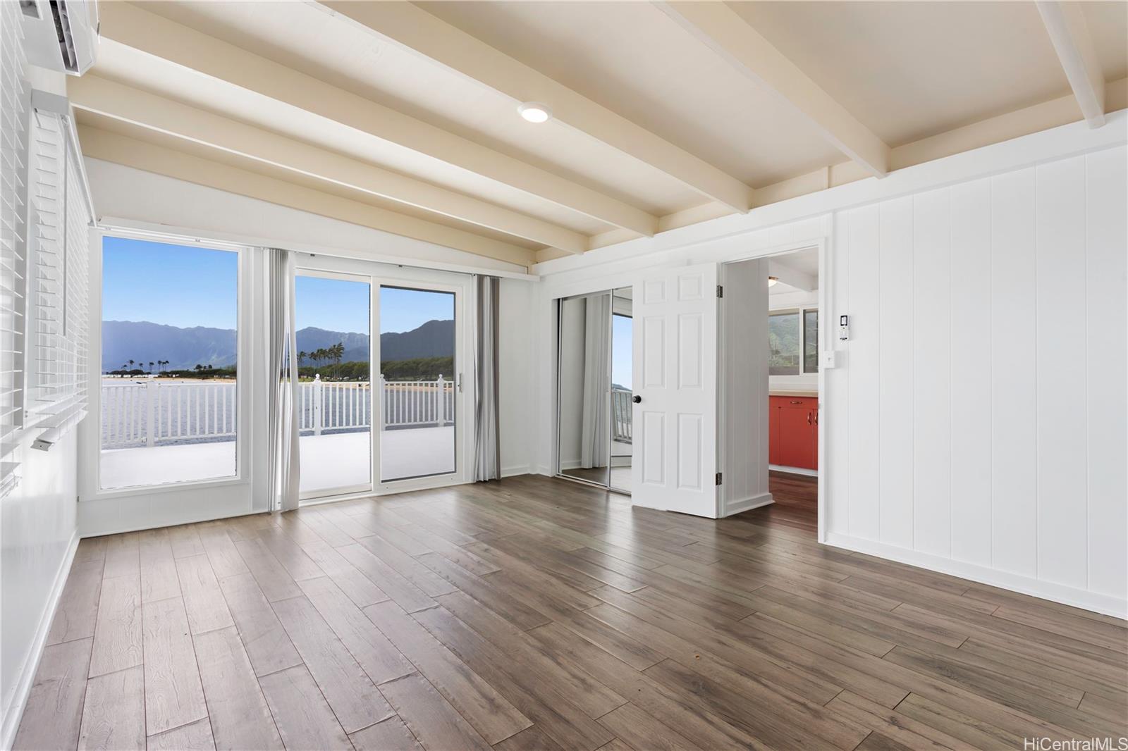 AMAZING, UNIQUE, AND RARE OCEANFRONT PROPERTY WITH GORGEOUS PANORAMIC VIEWS!! Positioned on an oceanfront point with water frontage on two sides, this very special lot boasts expansive unobstructed views of legendary Chinaman's Hat island, Kaneohe Bay, the majestic Koolau Mountain Range, beautiful sandy Kualoa Regional (Beach) Park, and more! Enjoy exceptional natural privacy, direct ocean access, and a private boat ramp. On a private lane off Kamehameha Hwy. across from wonderful Kualoa Ranch. Move right in - freshly painted with a kitchen renovation in 2018. Enclosed downstairs lanai, upstairs beautiful deck, both perfect for entertaining. 1 bed/1 bath downstairs, 2 bed/1 bath upstairs. SPLIT A/C UNITS IN EACH ROOM! Within about half an hour drive to Kaneohe Marine Base, less to Kaneohe Town. Interior size and number of bedrooms differ from tax record. MUST SEE TODAY!