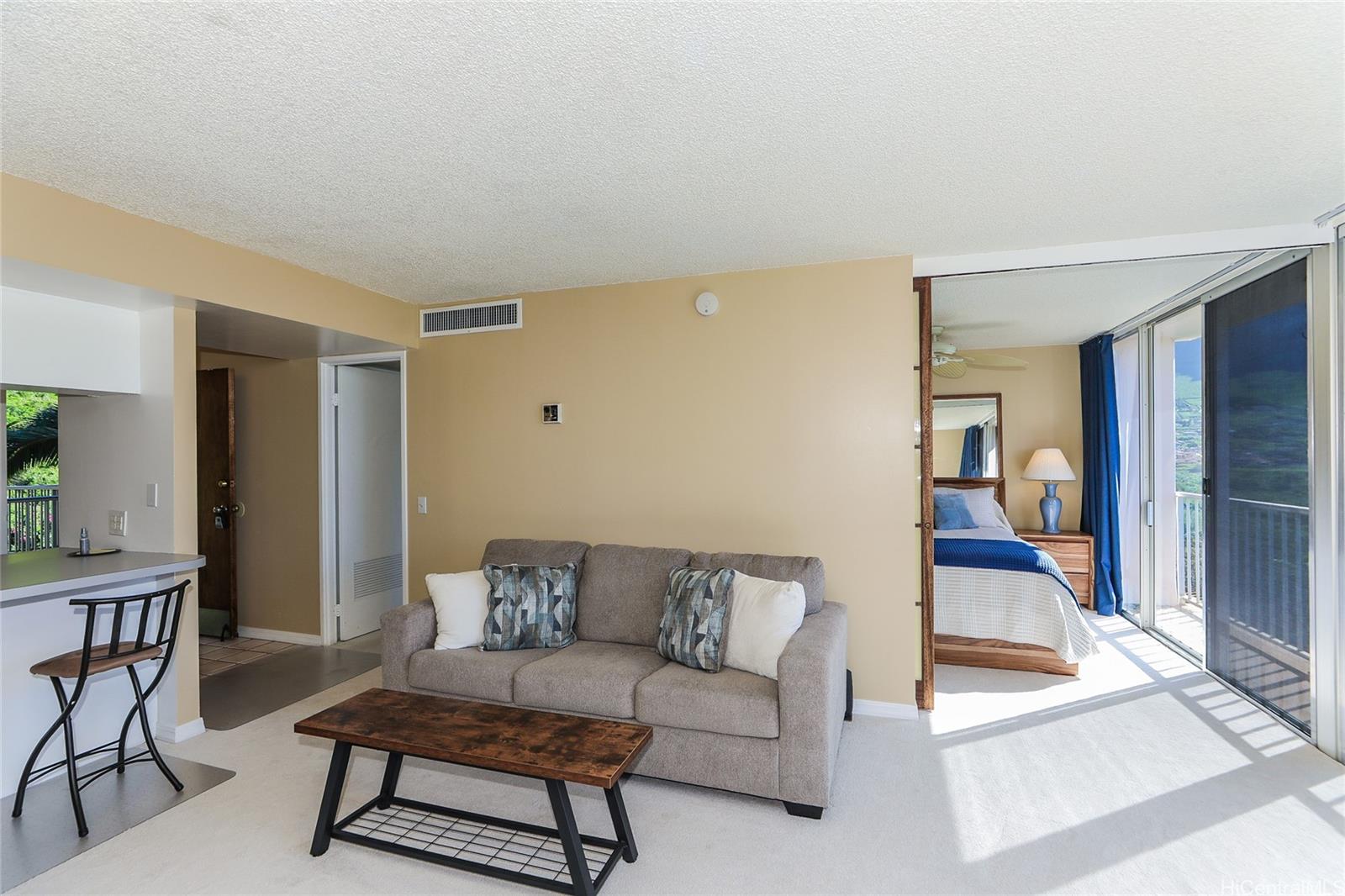 Own a piece of affordable Hawaiian Paradise. 8th floor, corner unit, 1 bdrm, 1 bath, 1 primary unassigned parking stall. Stunning ocean, mountain & sunset view, 680 sf interior; 60 sf lanai, newer furnishing, roaming peacocks, 24 hour security, guest parking, heated swimming pool, community laundry, bbq area, on busline. Maintenance fees included central a/c, hot water, electricity, water, cable, and internet, minutes to World Famous Makaha Surfing Beach, only 25 miles to world renown Ko Olina Resort and an additional 10 minutes will get you to the second city of Kapolei.