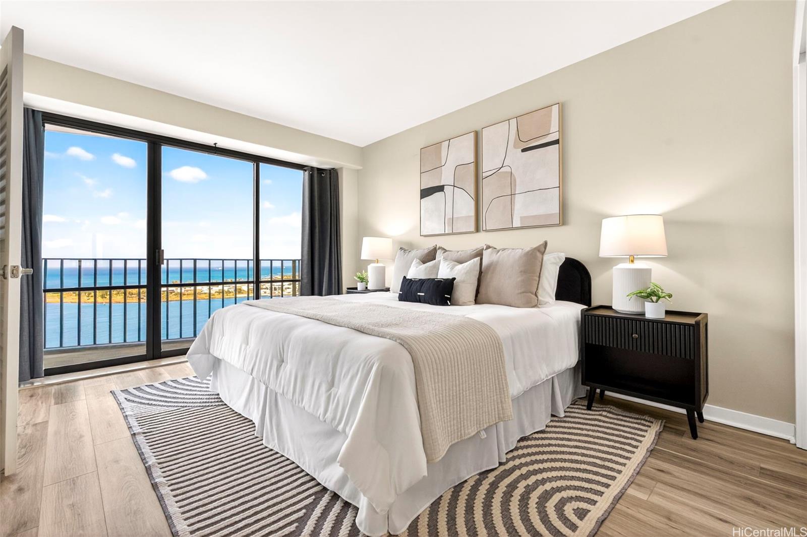 サンセットオープンハウス 3/28/26 土曜日 午後 5 ~ 7 時! 広々としたリビングルームと 2 つのベッドルームから、息を呑むような遮るもののない港と輝く海の広角ビューが楽しめます! 島暮らしを真に定義するパノラマの海の景色で目覚め、くつろぎます。この手入れの行き届いた住居は、全体にビニールフローリング、バスルームにはトラバーチンタイルを使用しており、清潔で時代を超越した仕上がりです。リビングルームはショーケースの壁照明と埋め込み天井で引き立てられ、暖かくエレガントな雰囲気を醸し出しています。キッチンには花崗岩のカウンタートップ、ステンレス製の電化製品、ワインクーラーがあります。セントラルエアコンにより、一年中快適に過ごせます。管理費には電気、ケーブル、インターネット、水道、下水道、ゴミ処理が含まれており、非常に価値があり便利です。屋根付き駐車場 1 台分が含まれています。ハーバースクエアには、プールとバーベキューエリアを備えた 6 階のレクリエーション デッキがあります。レストラン、ショップ、ビジネス、ホノルルのダウンタウンの近くに位置しています。