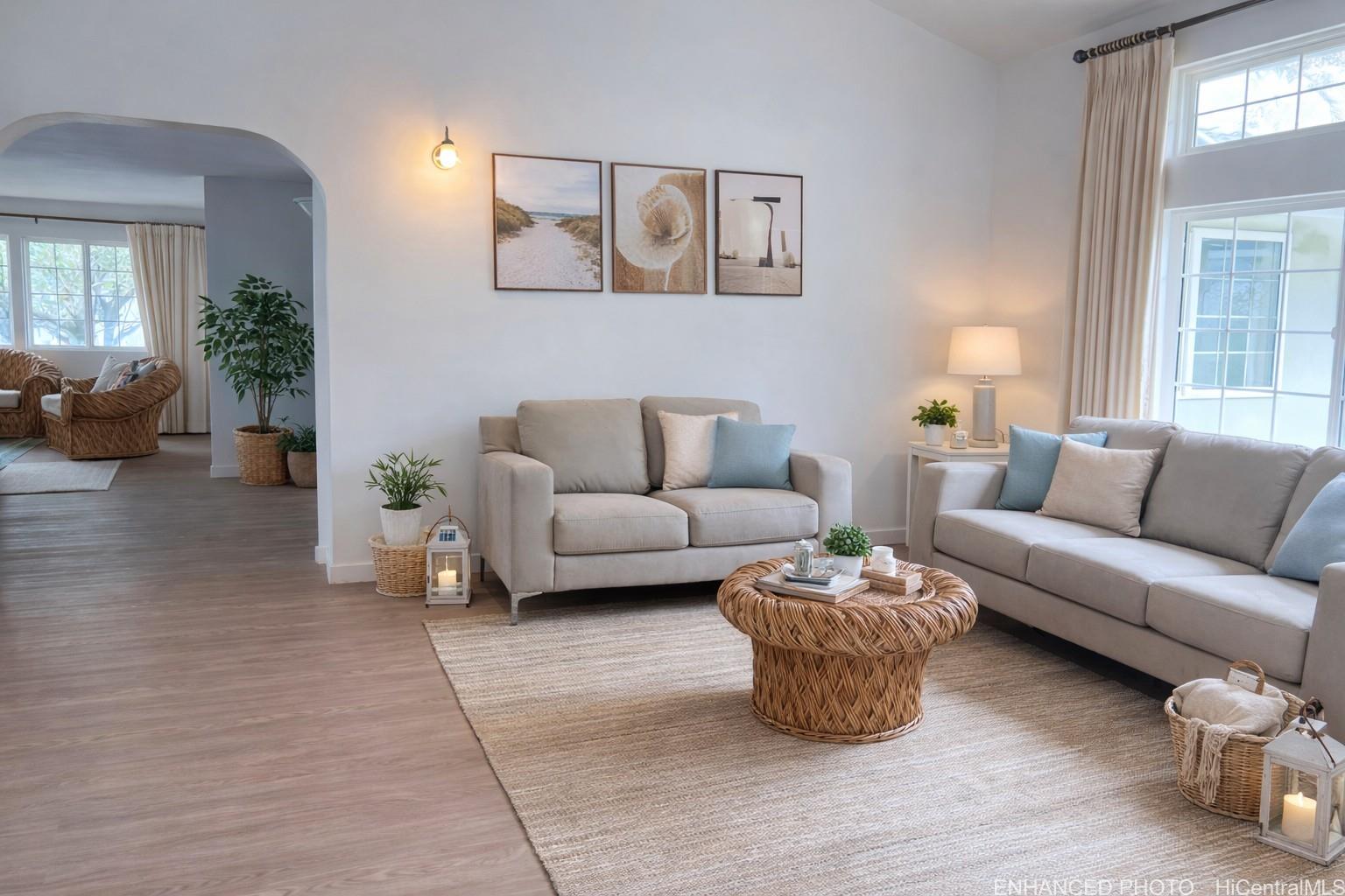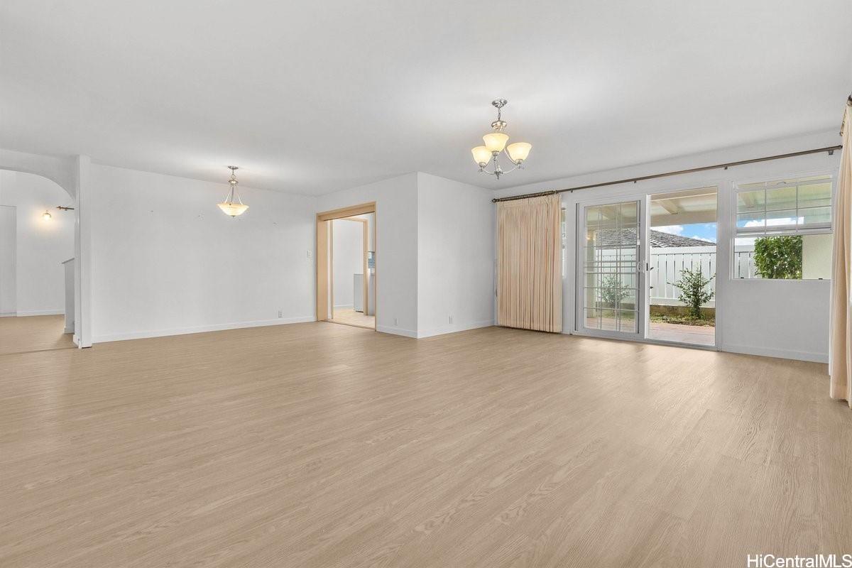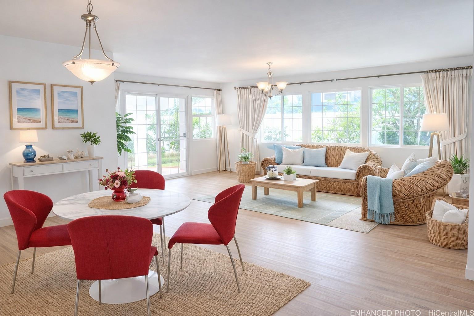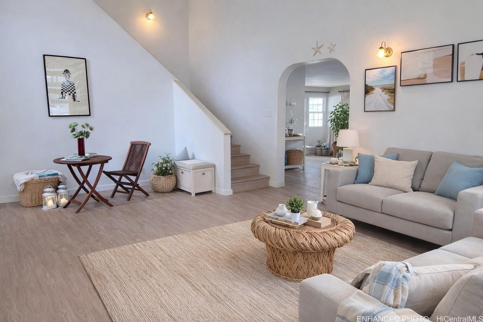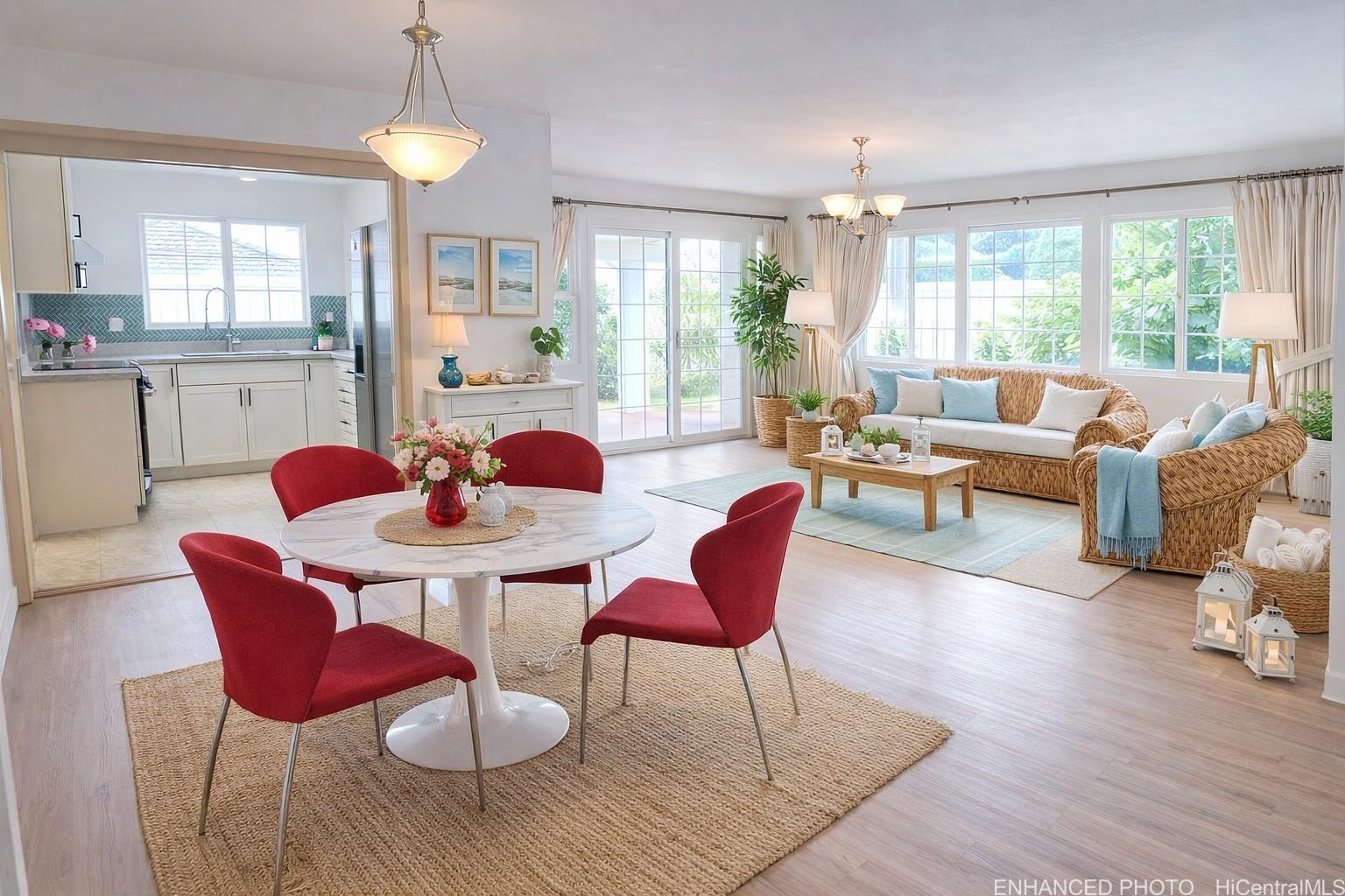 Rarely available & move-in ready! New flooring just completed Jan 2025. Gorgeous home in the highly desirable Ali'i Shores neighborhood of Kaneohe. 5 bedrooms & 3 bathrooms. Bright & airy with a wonderful layout. Excellent for large and extended families, with plenty of privacy. Located on a serene & beautifully landscaped cul-de-sac street with underground electricity adding to the property's appeal. Downstairs features a double height formal living room, large family room, kitchen & dining area, plus 3 bedrooms & 2 bathrooms & lots of storage. Upstairs features a second living room, 2 bedrooms & 1 bathroom. Enjoy breathtaking Ko’olau mountains & ocean views from the upstairs lanai & living room! Over $110,000 in upgrades completed in 2023: new kitchen, two renovated bathrooms & a new fence. Enjoy the tranquility of a yard & garden with plenty of local fruit trees. Located in a neighborhood perfect for water lovers with Kaneohe Bay & Sandbar just a short ride away. Enjoy paddle boarding, sailing & fishing! Minutes to Windward Mall, Kaneohe Bay Shopping Center, Military Bases & more. A must see!