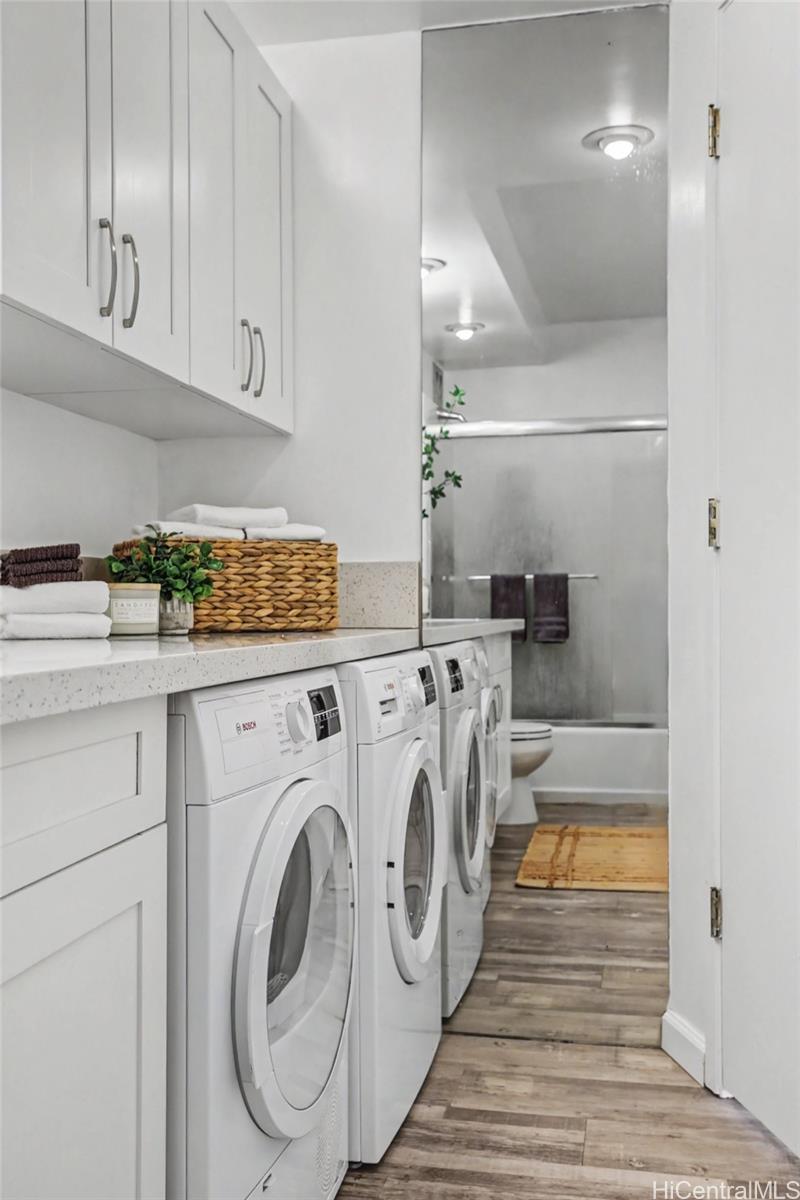 Atkinson Plaza offers a lifestyle that caters to everyone—from food enthusiasts and shopaholics to beach lovers and fitness fans. Positioned to enjoy the best of both worlds, minutes away from vibrant Kakaako and Waikiki, while savoring a peaceful retreat outside the daily hustle and bustle. Quaint and modest, this building features amenities designed for enjoyment, including a rooftop pool with stunning views of Waikiki, the ocean, and nearby mountains. Residents can also enjoy a BBQ area, sauna, and tennis court, making it suitable for diverse lifestyles. The location is highly convenient, with two dedicated parking stalls, eliminating parking worries. Inside, the spacious unit boasts large windows that allow for plenty of natural light, creating a bright, airy atmosphere. An enclosed lanai extends your living space, perfect for hosting friends or enjoying family dinners. The open layout includes an upgraded kitchen with sleek white cabinets and elegant quartz countertops, adding sophistication to your culinary experiences. Embrace a lifestyle of comfort, convenience, and style at Atkinson Plaza.