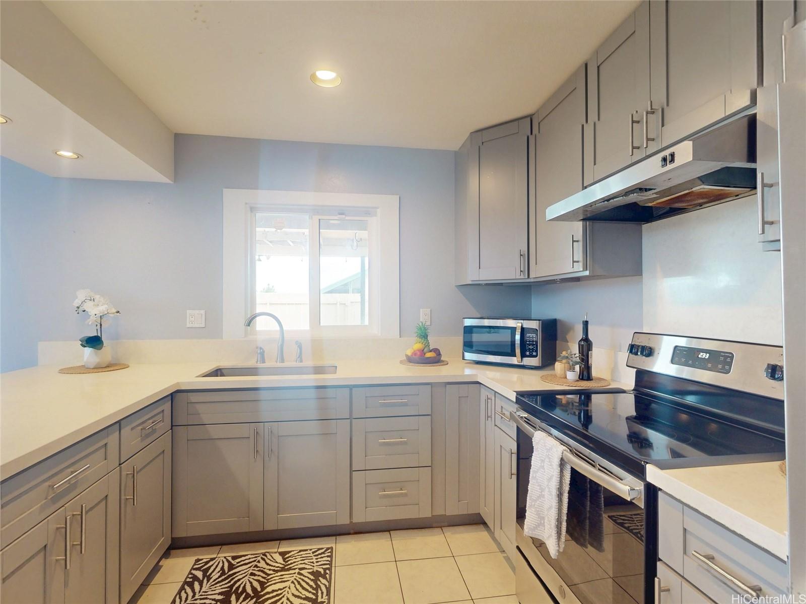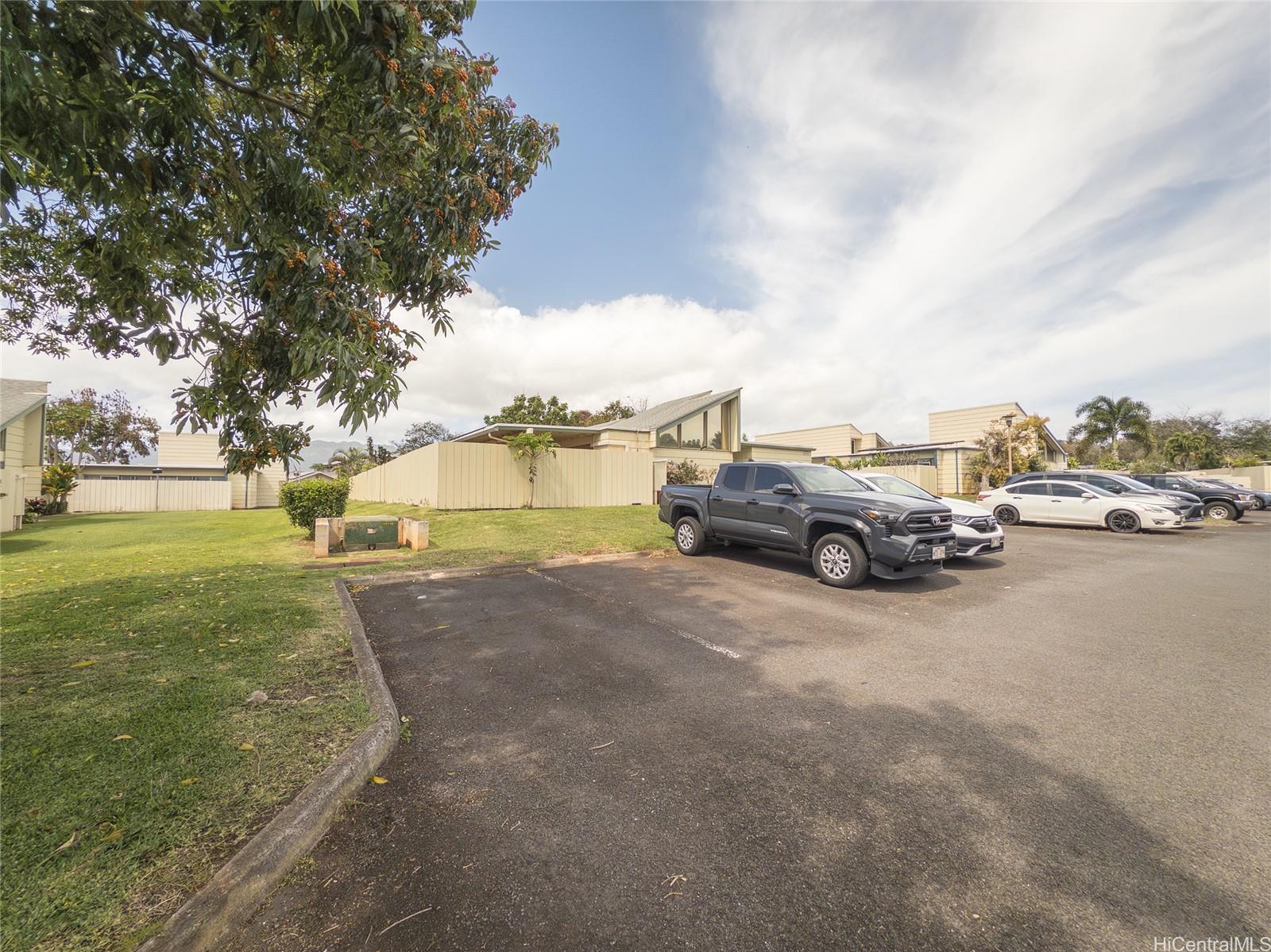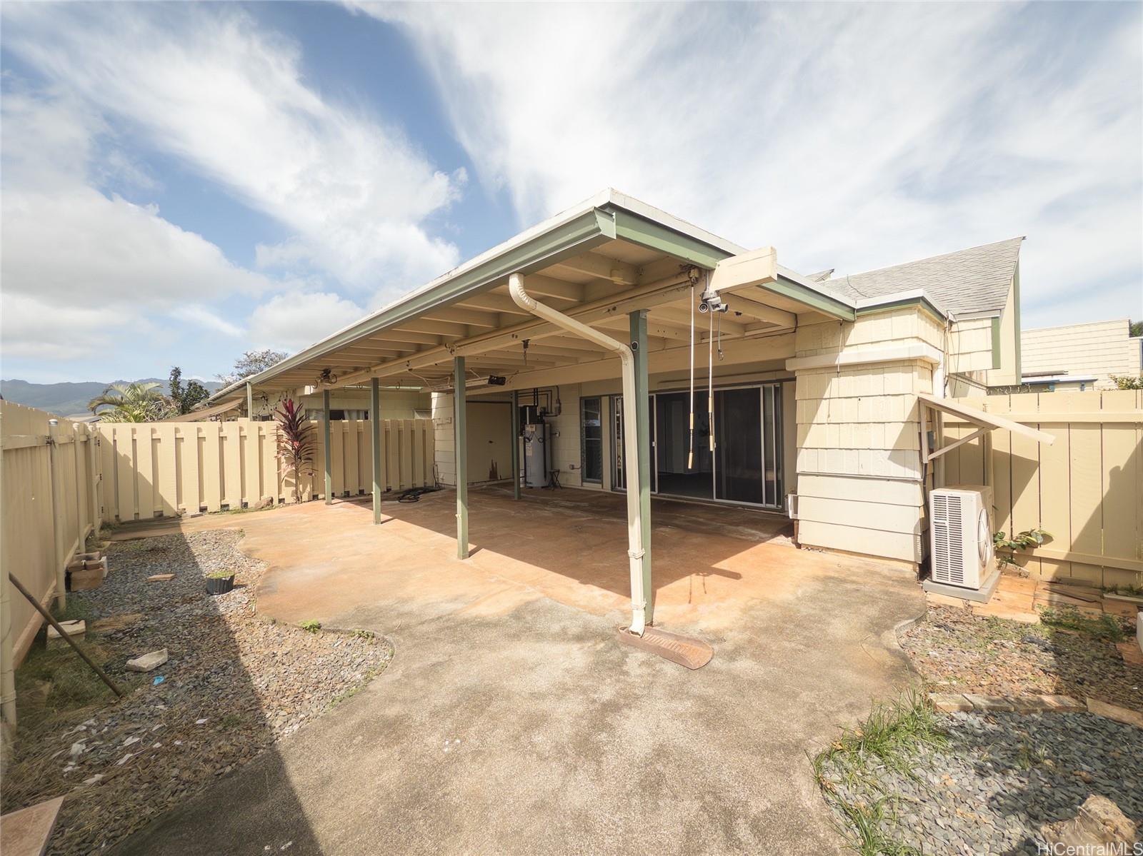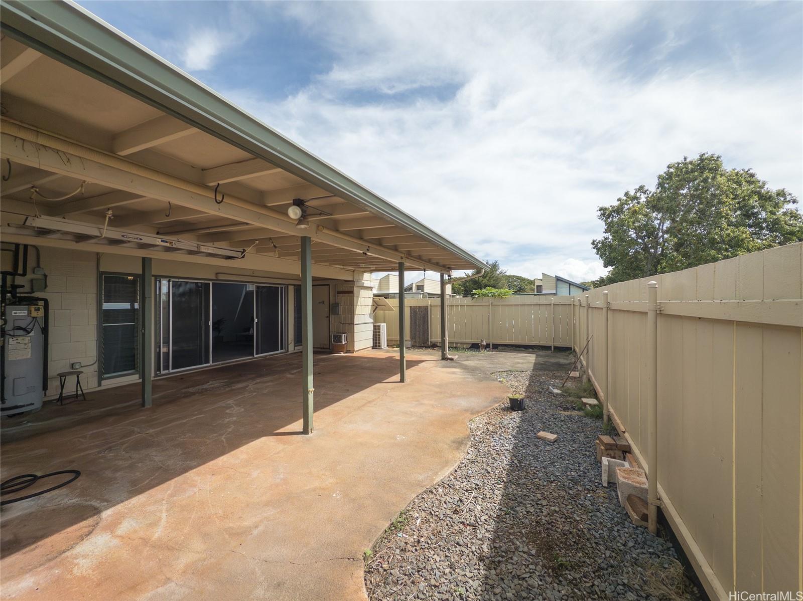 Spacious single-level end unit with no neighbors above in desirable Kealohi Hale in Mililani. this bright and comfortable home features an upgraded kitchen with convenient eat-at counter seating that opens to the living area, creating a welcoming space for everyday living and entertaining. The living area flows seamlessly to a large covered lanai and enclosed courtyard, providing additional outdoor living space that is perfect for relaxing, dining, or hosting gatherings with family and friends. The unit is equipped with a solar water heater and split air conditioning for added efficiency and comfort. The end-unit location allows for added privacy. Located in a pet-friendly community near schools, neighborhood parks, and recreation center, this home offers both comfort and convenience. Mililani Town is a highly sought-after master-planned community known for its wonderful lifestyle amenities, including seven classes and activities for residents of all ages.