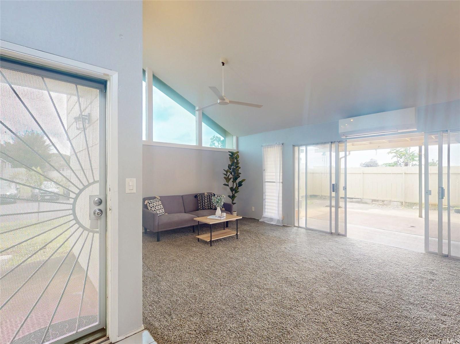 ミリラニの人気エリア、ケアロヒ・ハレにある、上階に隣人がいない広々とした平屋建ての角部屋です。明るく快適なこの家は、リビングエリアに面した便利なカウンター席付きのアップグレードされたキッチンが特徴で、日常生活やゲストをもてなすのに最適な居心地の良い空間を作り出しています。リビングエリアは、広々とした屋根付きのラナイと囲まれた中庭にシームレスにつながり、リラックスしたり、食事をしたり、家族や友人と集まるのに最適な屋外リビングスペースを提供します。このユニットには、効率性と快適性を高めるために、太陽熱温水器とスプリットエアコンが装備されています。角部屋なのでプライバシーも確保されています。学校、近隣の公園、レクリエーションセンターに近いペットフレンドリーなコミュニティに位置するこの家は、快適さと利便性の両方を提供します。ミリラニ・タウンは、あらゆる年齢の住民向けの7つのクラスやアクティビティを含む素晴らしいライフスタイルアメニティで知られる、非常に人気の高いマスタープランコミュニティです。