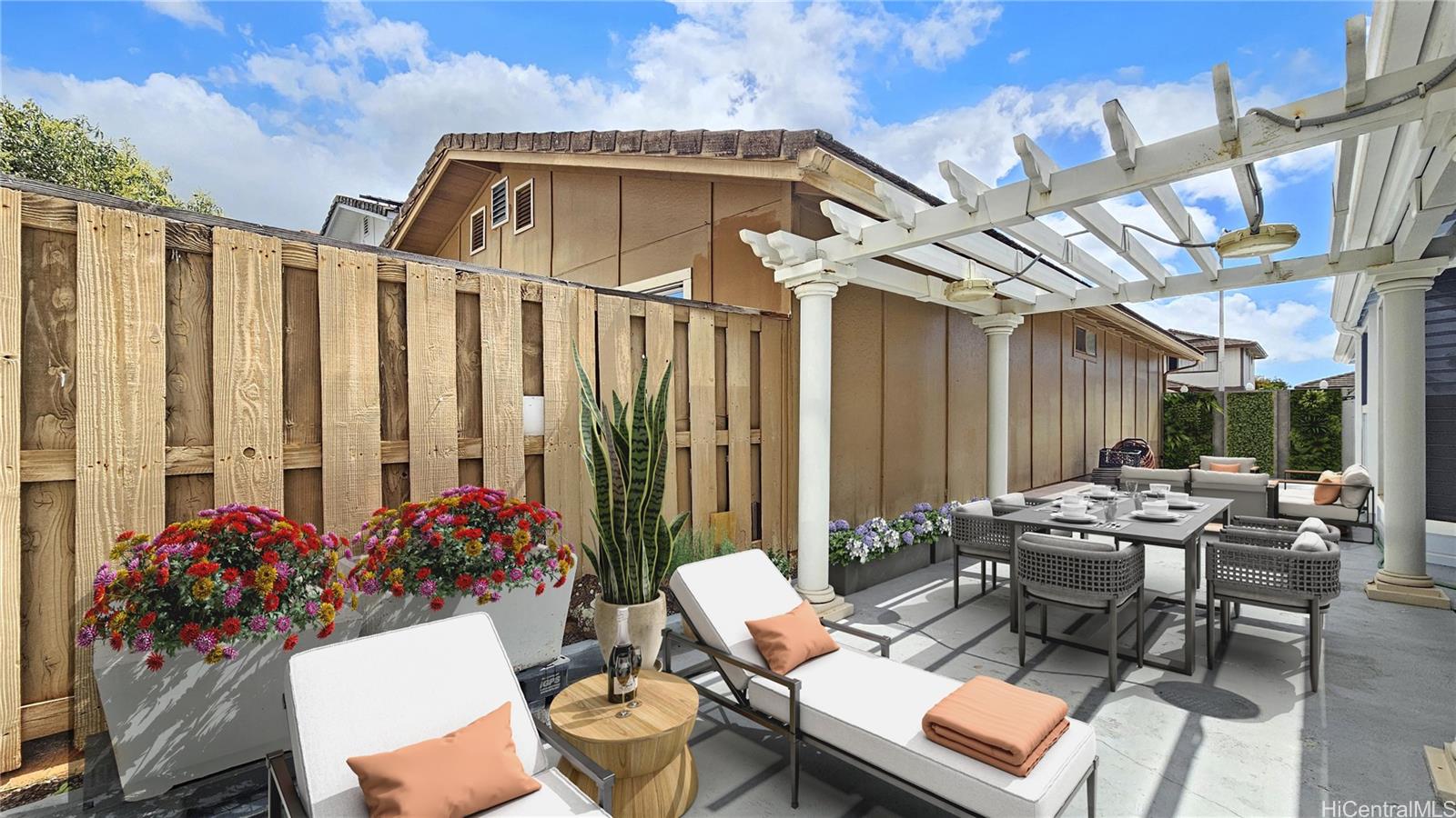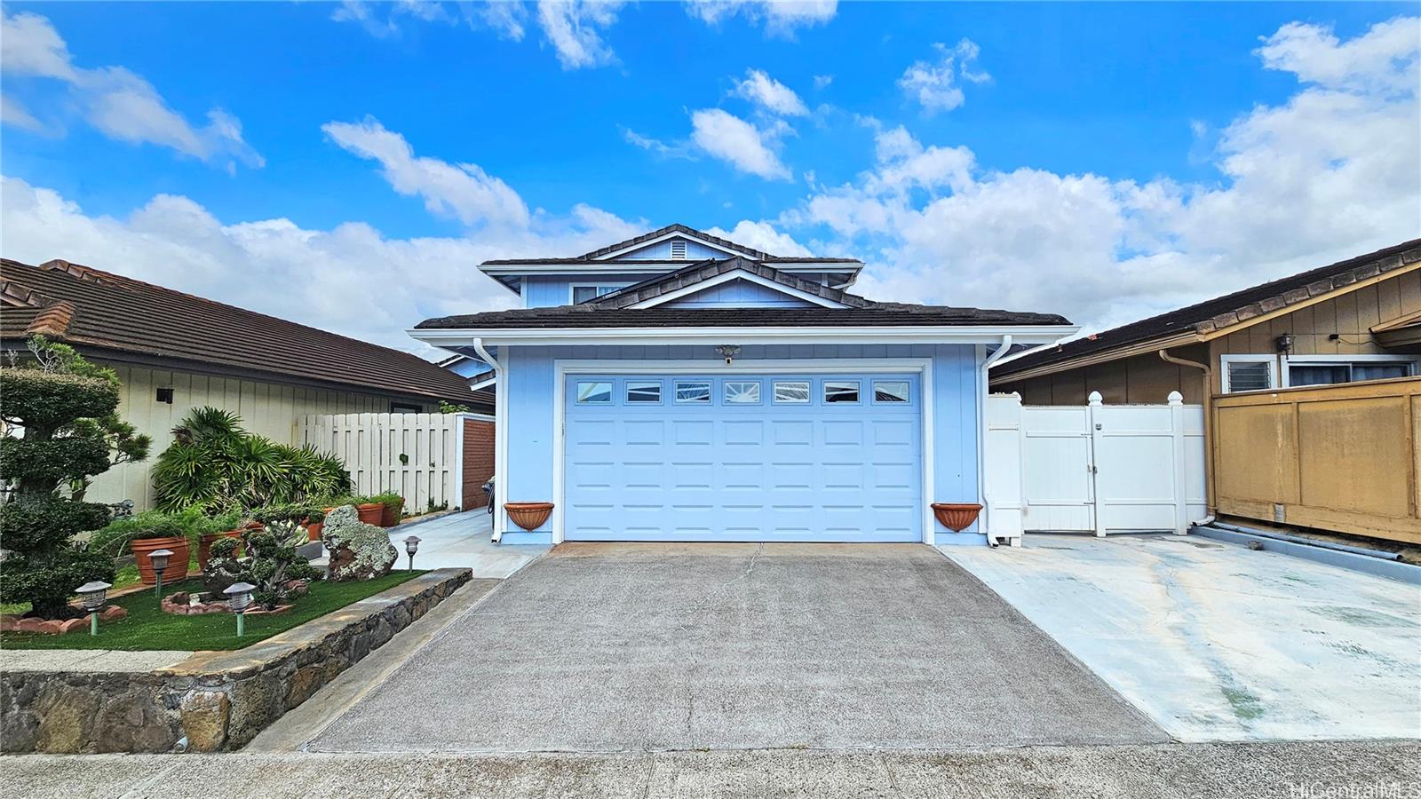 Waipio Gentry Gem! This well-maintained 3-bedroom, 2.5-bath single-family home features a two-car garage and an extended driveway for three cars. It includes a tile roof, solar water heater, and an owned photovoltaic (PV) system with coveted net metering for energy efficiency and long-term savings. Inside, enjoy an upgraded kitchen and a permitted extension that adds both space and versatility. The fully fenced, low-maintenance yard is perfect for relaxing and entertaining. Ideally located near shopping, dining, schools, and freeway access, this move-in-ready home offers modern upgrades in a desirable neighborhood.
