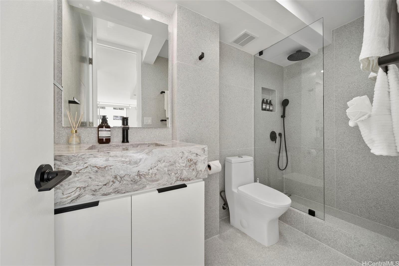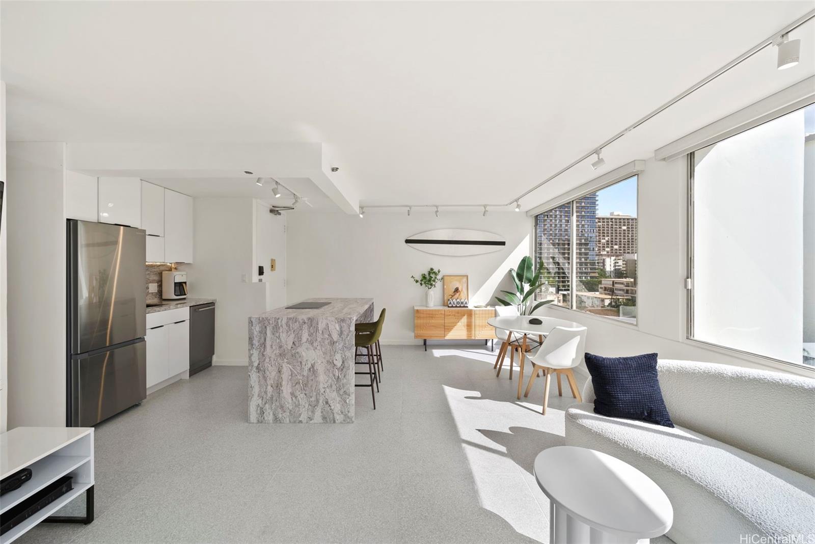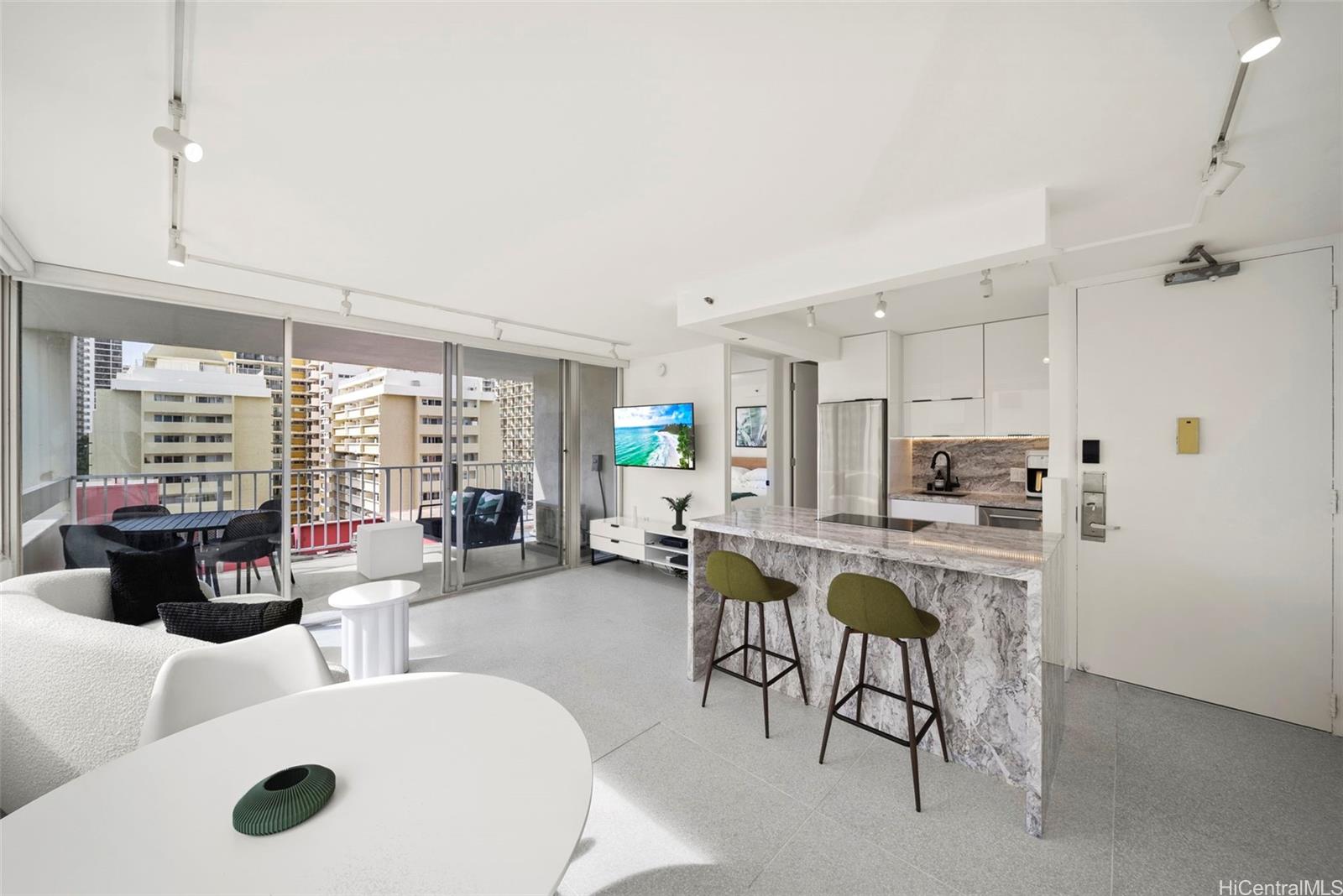 Exceptionally remodeled 1 bedroom unit just a few minutes walk to the famous Waikiki Beach. This unit is an active vacation rental unit renting on Airbnb with high reviews. Suited for investors that want income from Day 1. Seller self manages and open to managing the unit for the new owner. Unit completed a full renovation in 2023. Some upgrades include ceramic tile flooring, European style kitchen, floating custom one piece quartz vanity/sink, and luxury Quartz counters. Lighting/electrical and plumbing has been upgraded as well. Split AC has also been installed along with new windows. All furnishings are included in the sale. Pacific Monarch is arguably one of the best vacation rental building in Hawaii. Building amenities have been recently renovated as well. Building offers the Highest Rooftop Pool, jacuzzi, sauna, and recreation area with BBQ grills. The building also has one of the larger parking garages in Waikiki and guests and owners are able to use the garage with a reasonable fee. Located in the center of Waikiki. Few minutes walking distance to all the action Waikiki has to offer plus being just a few minutes from the beautiful Waikiki Beach. This is a special unit!