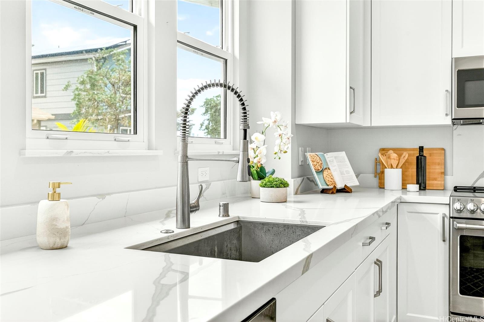 人気のカウル地区へようこそ!築浅のこの3ベッドルーム、2.5バスルームの一戸建て住宅は、モダンなスタイル、プライバシー、エネルギー効率を融合させた、考え抜かれたデザインの居住空間1,673平方フィートを提供します。オープンコンセプトの間取りは、9フィートの天井、全室に敷かれた高級ビニールプランクフローリング、カスタムタイルワーク、そして多目的に使えるボーナスロフトが特徴です。キッチンは、白いシェーカーキャビネット、クォーツカウンター、アップグレードされたGEカフェ家電を備えたデザイナーの夢のような空間で、日常生活やゲストをもてなすのに最適です。PVソーラーとテスラパワーウォールバッテリーバックアップにより、電気代を削減しながらセントラルエアコンを稼働させ、安心してお過ごしいただけます。緑地帯に面した角地に位置し、隣接する住宅はわずか5軒のみ。片側に隣家がないため、プライバシーも確保されています。美しく造園された庭は、最新のスプリンクラーシステム、飛び石、緑豊かな熱帯植物、そして2つのコンクリート製ラナイを備え、プロのデザイナーによって設計されています。パーティーにも最適です!プライベートなフェンスで囲まれた裏庭にあるデラックスジャグジーで、ゆったりとおくつろぎください。H-1からわずか数分の便利な場所に位置し、成長著しい「第二の都市」カポレイのビーチ、ショッピング、レストランへも簡単にアクセスできます。