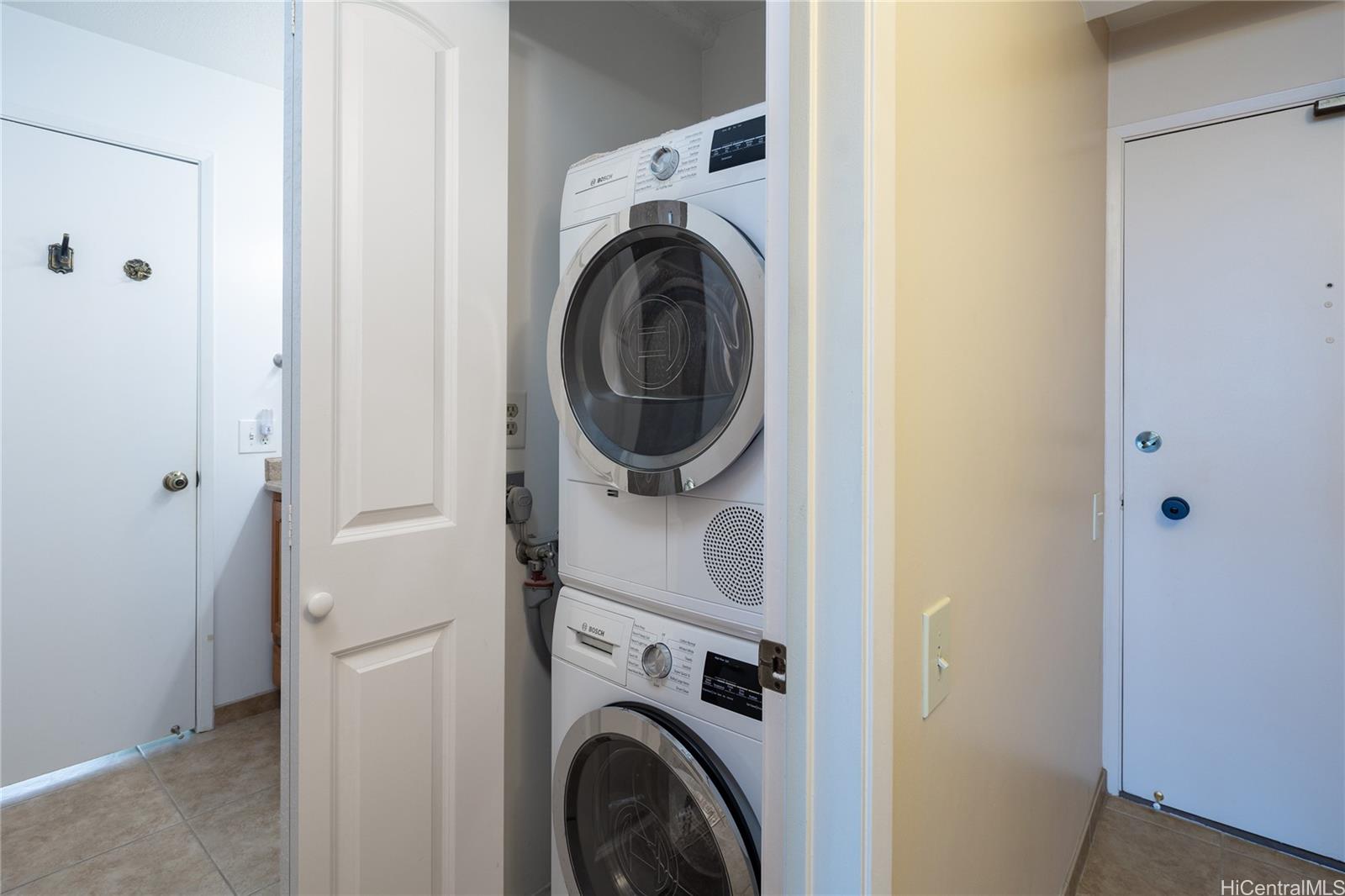 Panoramic Ocean View in this rarely available unit in the 19 stack--40th floor corner unit, Resolution Tower. It's a WOW View at all times of the day or night. Excellent condition. Enclosed lanai makes for a huge living room. The corner unit allows excellent air circulation. Bedroom has great views of the mountains. Lots of storage in the huge closet in the bedroom hallway, plus another closet in the living room hallway. Kitchen has lots of cooking items plus dishes and glasses. Bosch front loader washer and dryer. Parking stall on the 6th floor near the elevators. Many amenities in this complex such as pool and whirlpool, fitness center, BBQs and sauna. Beaches and Magic Island are close by, along with Ala Moana Shopping Center, easy bus service, and restaurants. 96.893% of the fee has been purchased. Only 3.107% left. Lease rent is paid quarterly at $41.09 per quarter. Unit is being sold AS IS. Easy to see. Vacant. Seller wishes to have Kevin Batungbacal for escrow at First American Title, Aina Haina.