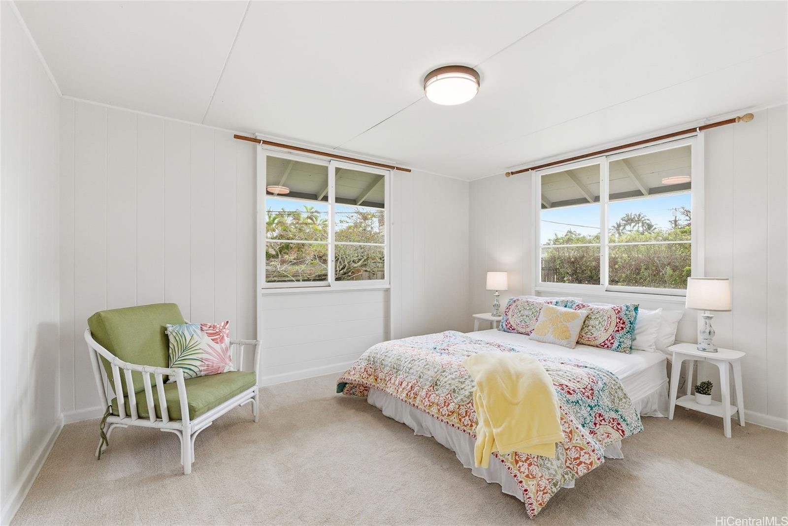 Located just moments from the white sands of Kailua Beach, this charming corner-lot home is the perfect foundation for your family’s forever retreat. Freshly painted tongue and groove walls with brand-new bedroom carpeting, this single-level residence allows you to settle in comfortably while you begin customizing and modernizing each space to your unique taste. Or embrace it and live in it as is. but whichever you decide don't miss this incredible opportunity. The home balances its original "old-world" character with oversized original windows in the bedrooms, an expansive living area with bamboo flooring and a wall of sliding doors leading out to the front courtyard. Outside, the generous corner lot offers incredible flexibility—whether you dream of building an ADU for guest, rental, or extended family or creating a lush oasis with a pool for entertaining and relaxing. Situated in an active community where walking and biking are the norm, you’ll enjoy a front-row seat to the local 4th of July parade and seamless commutes via the H-3. Being close to schools and the Kaneohe Marine Base are also convenient.