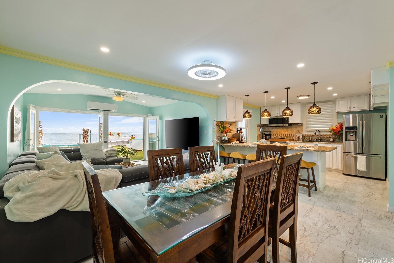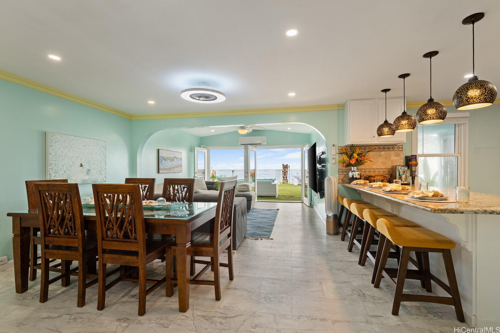 Hawai‘i. Step inside to discover an updated interior featuring high-end finishes, modern flooring, and designer touches throughout. The gourmet kitchen is equipped with luxury appliances, perfect for entertaining or enjoying quiet seaside mornings.