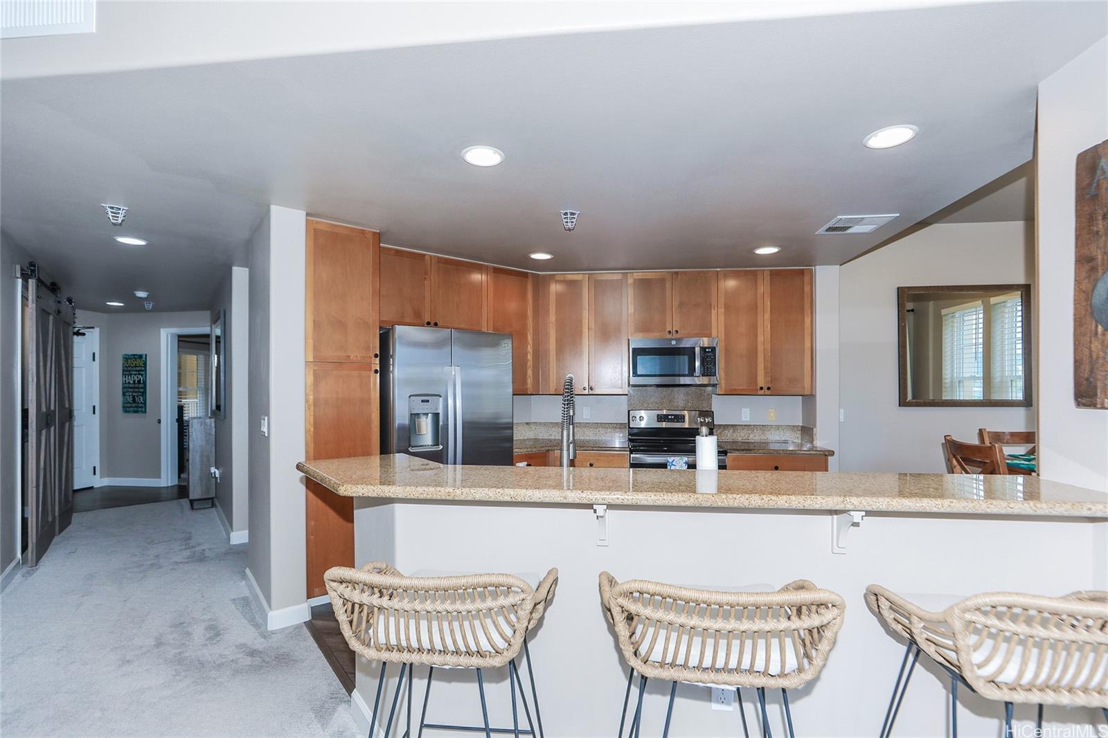 日曜オープン - ハワイカイ半島のゲート付きコミュニティ「ザ・コロニー」にある、広々とした屋根付きラナイを備えた、見事に改装された3ベッドルーム、2バスルームの角部屋ユニット - 主要道路から離れた静かな最高のロケーション - 山の景色 - マリーナに近い - 広い部屋、高い天井、豪華な主寝室専用バスルーム、明るく開放的な間取り、花崗岩のカウンタートップ - 全体的に多くの最近のアップグレード! - 改装されたバスルーム、すべての新しい床と無垢材の幅木、内装全体が塗り替えられたばかり、新しいセントラルエアコン、すべての新しいステンレス製キッチン家電、新しい給湯器、新しい省スペースの2in1洗濯乾燥機、すべての窓の新しいカバー、主寝室の木製アクセントウォール、カスタムメイドのクローゼットシステム... - 2つの指定された屋根付きタンデム駐車スペース - 素晴らしいリゾートスタイルのアメニティを備えた安全でフレンドリーなコミュニティ! - プール、ホットタブ、ジム、ガスグリル、子供公園、芝生、洗車エリア、ウォーターフロントの遊歩道、ボートドック(待機リスト)、サーフボード/カヤック保管、クラブハウス、さらに–世界クラスのビーチ、レストラン、ショッピング、一流の公立学校(カイザー・コンプレックス)まで数分–ようこそ我が家へ!–入館するには、9000番にダイヤルして警備員に6214番に行くことを伝えてください。警備員が通りと建物の入り口ゲートから入館を許可します。–日曜日午後2時~5時まで営業